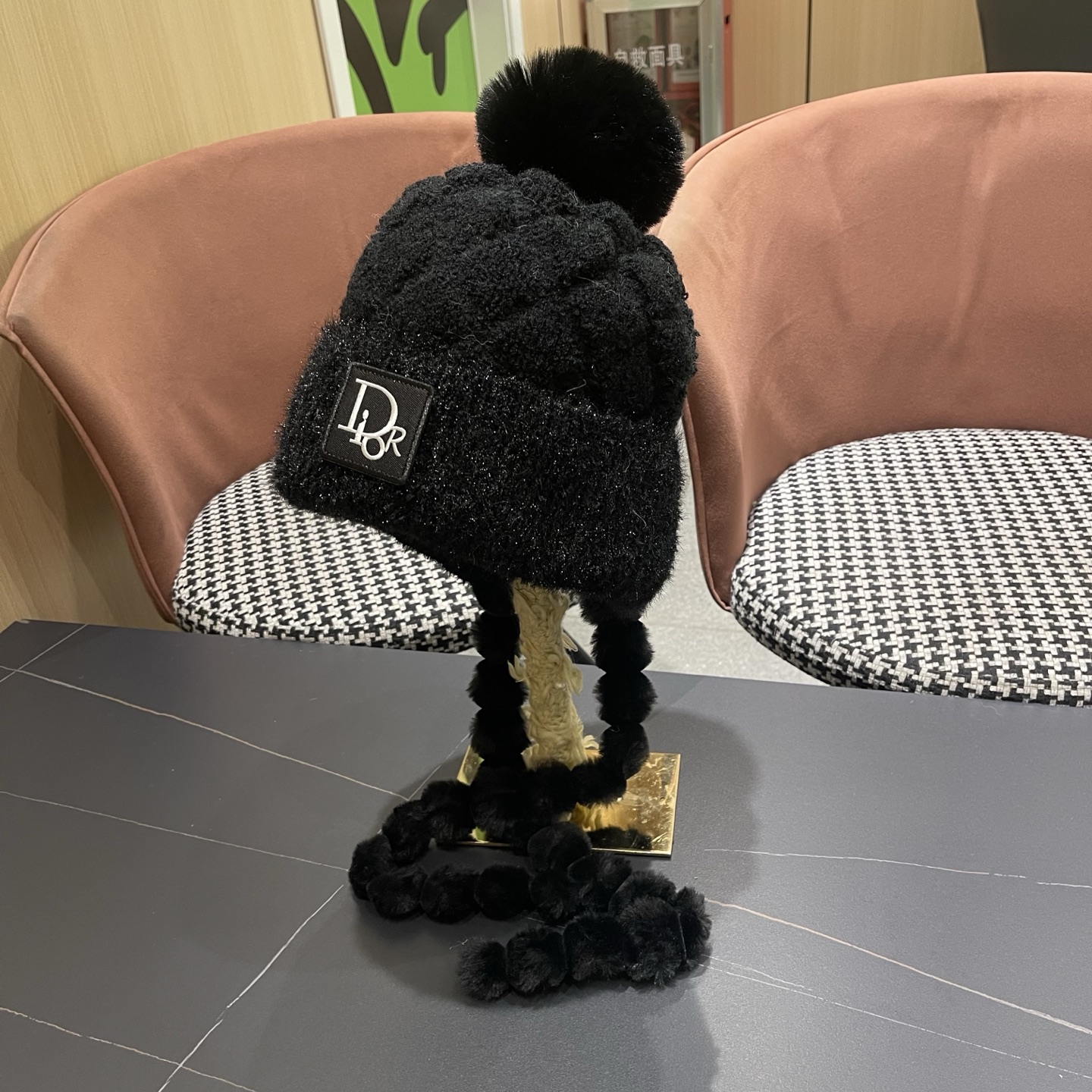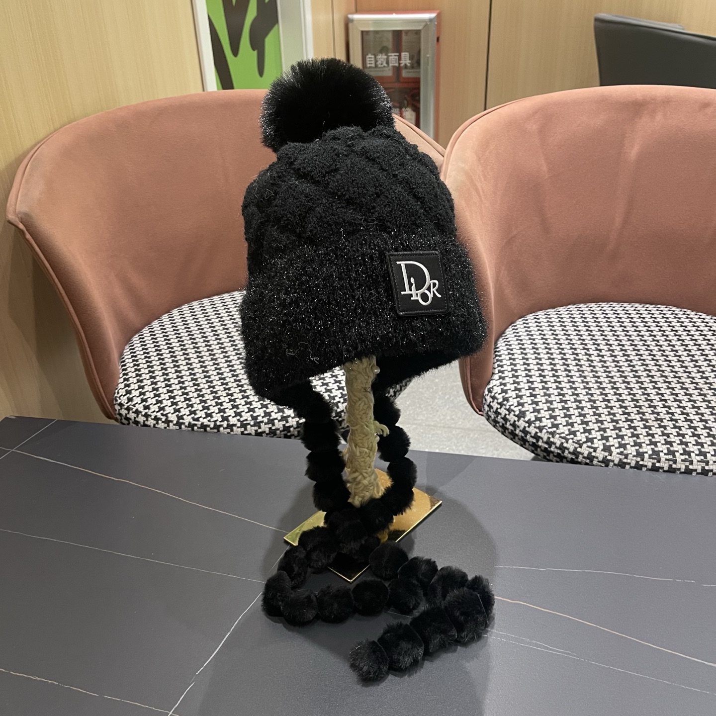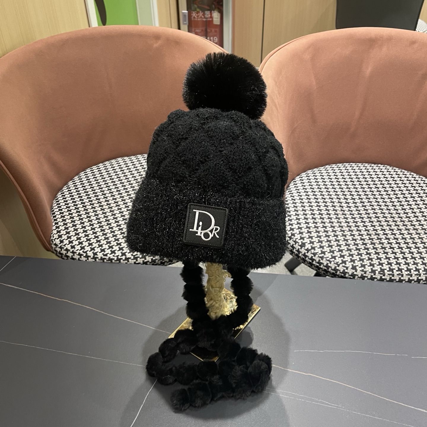 p80 Dior迪奥 韩版毛球加绒保暖护耳帽女冬季户外骑车防寒包头帽时尚百搭雷锋帽