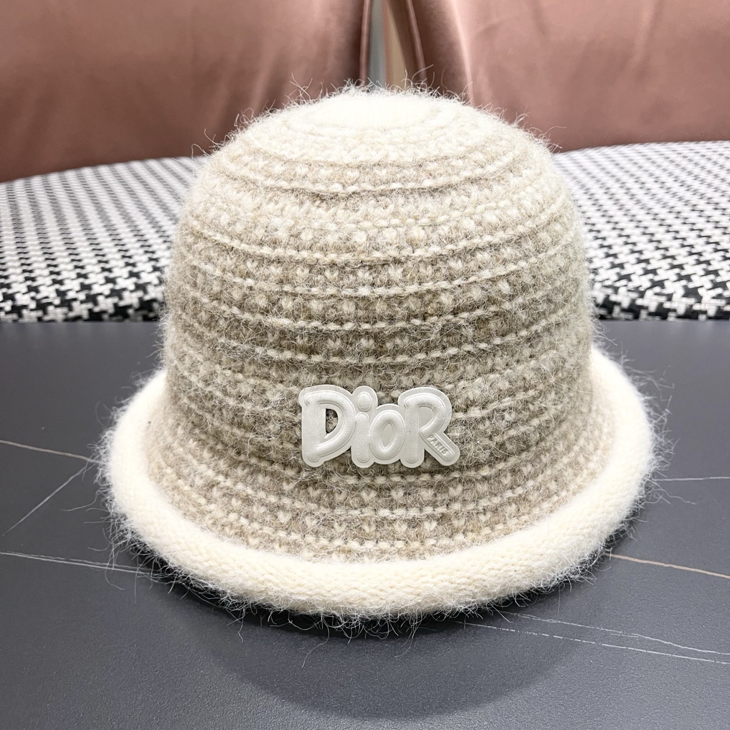 p80 Dior迪奥 秋冬季日系复古针织卷边渔夫帽子女 时尚百搭显脸小遮阳盆帽毛线帽