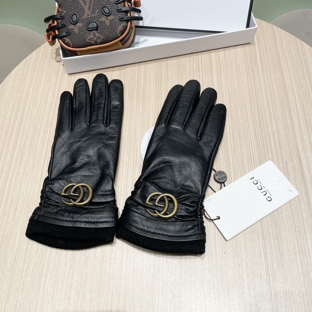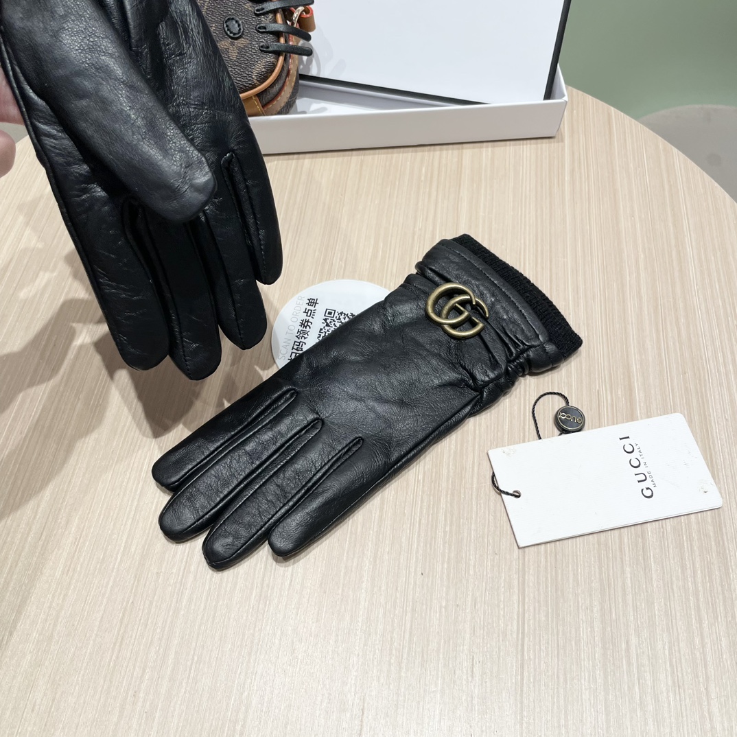 P135 配包装🔥女款✨新款古奇曲线新款独家首发‼️触屏女款手套Gucci古奇【原单品质】官网同步女士新款高档羊皮手套🎉🎉女神首选 不可错过💁💁百分百选用进口羊皮 皮质细腻柔软 认准进口羊皮特有手感👏👏羊绒内里保暖更佳 原版定制五金👍顶级做工💋💋💋任何细节都不放过💎正品开版 专柜一比一 👍尺寸:均码