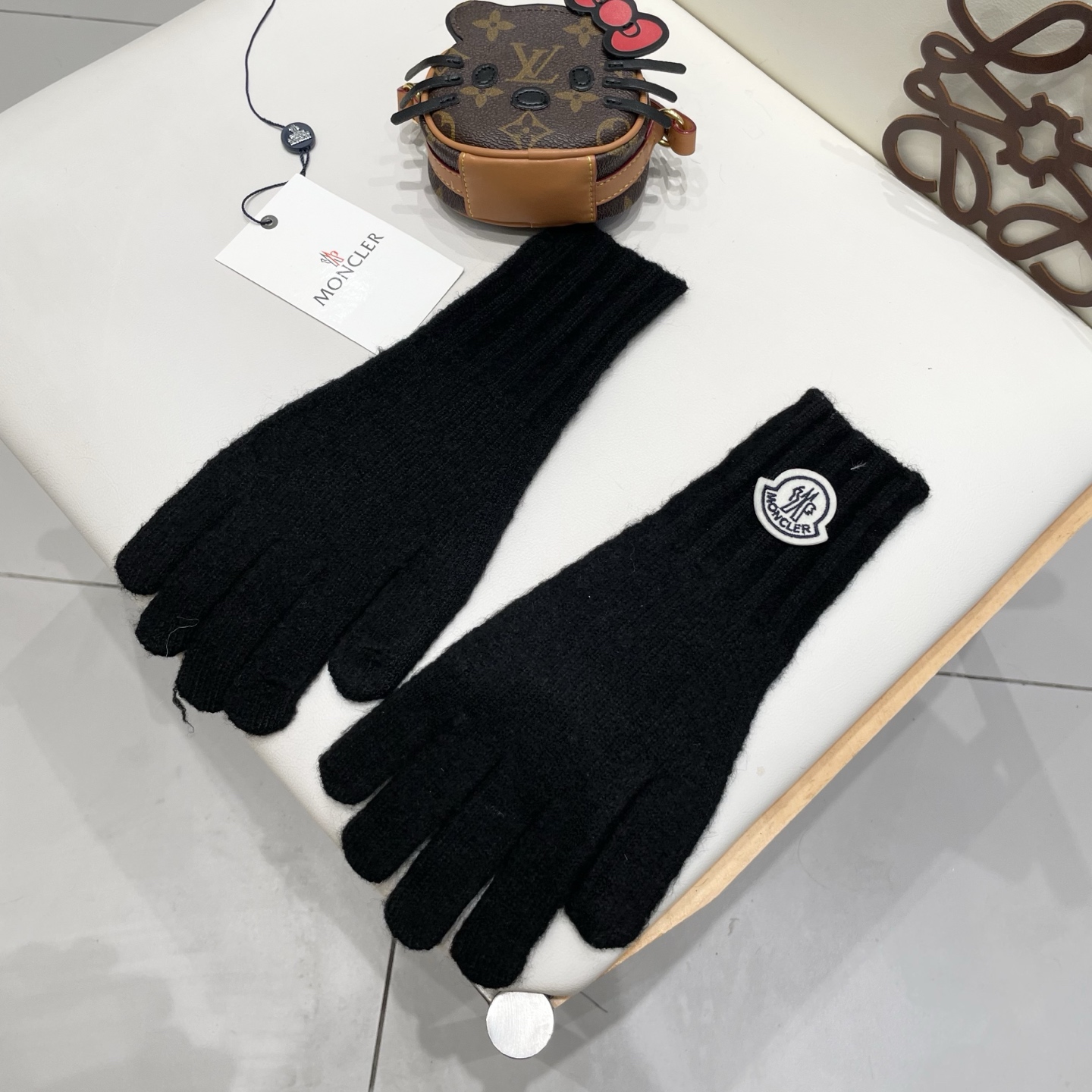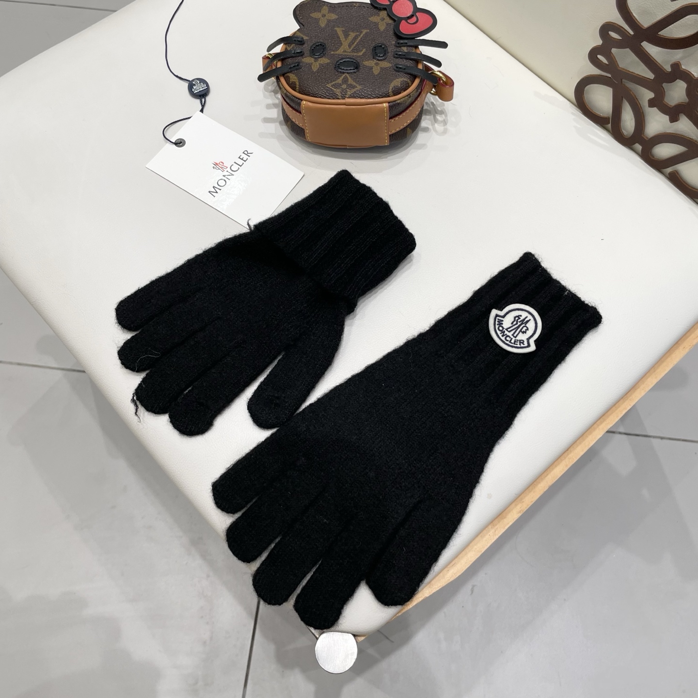 P110MONCLER蒙口高级感含羊毛甜美小香风优雅纯色手套女生冬季防冻全包分指可触屏 ht