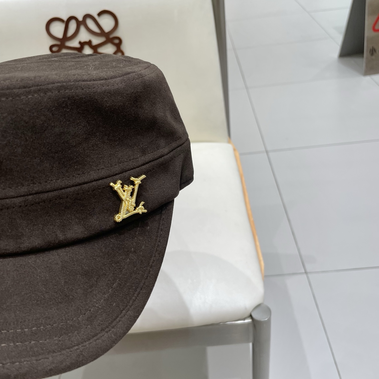 P90 LV路易威登新款复古麂皮绒平顶帽女时尚百搭画家帽男休闲显脸小高品质马术帽