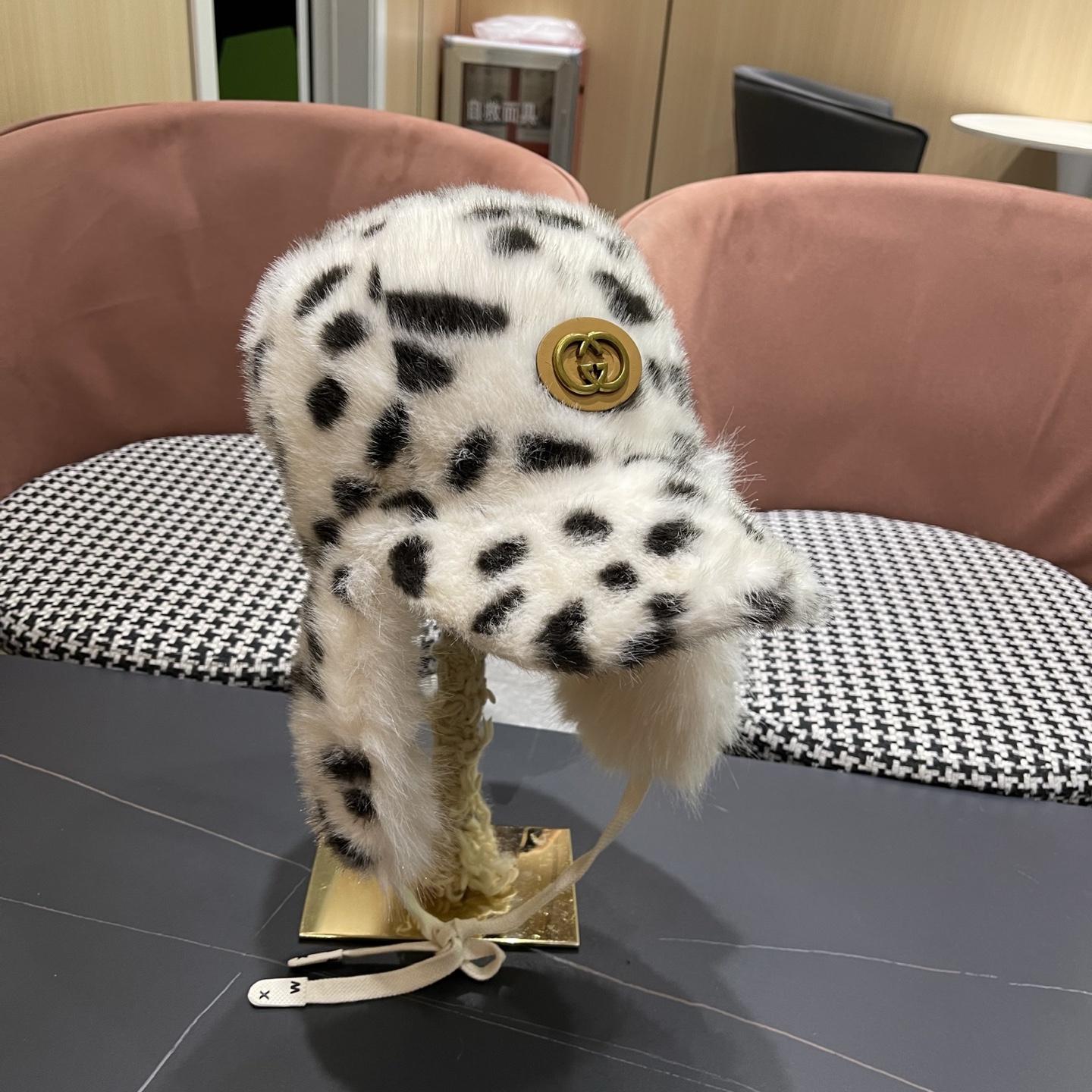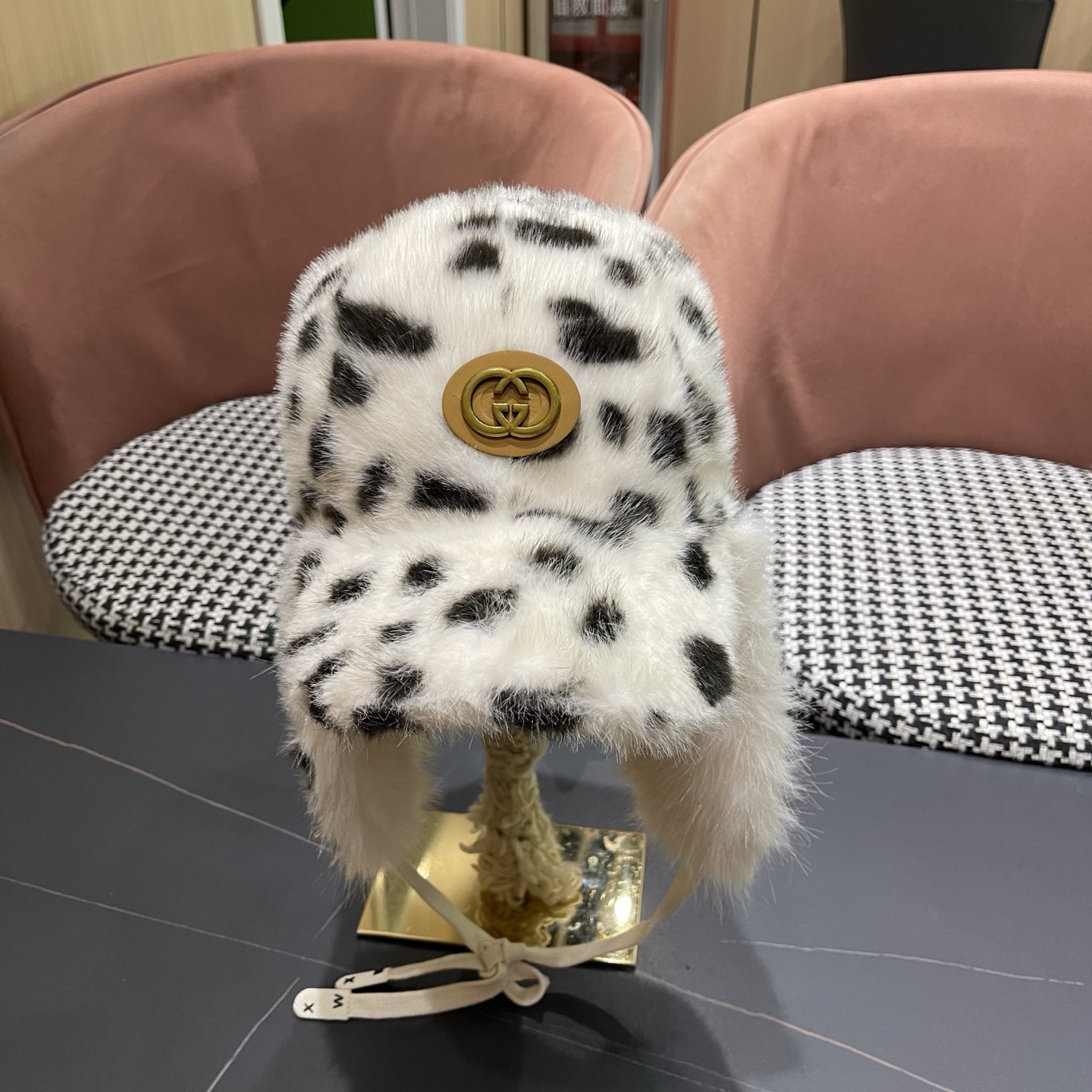 p90 古奇Guccl 复古豹纹毛绒护耳雷锋帽子女冬季保 暖加厚滑雪琦行防寒聘舌行帽