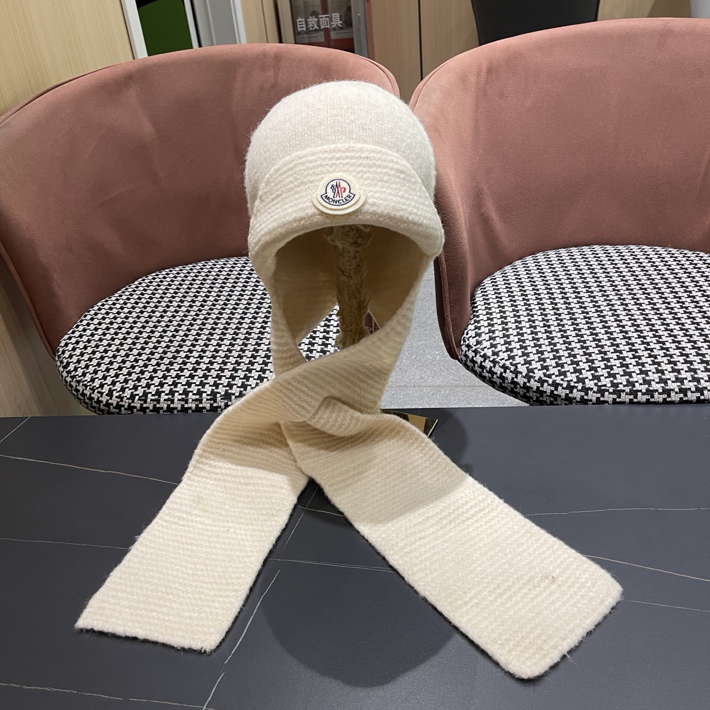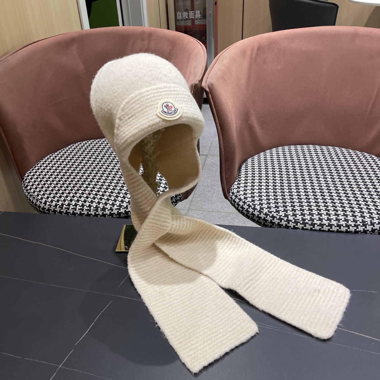 p90 蒙口Moncler 2025新款围巾一体针织帽子女冬季显 脸小防寒保暖毛线帽韩系包头帽