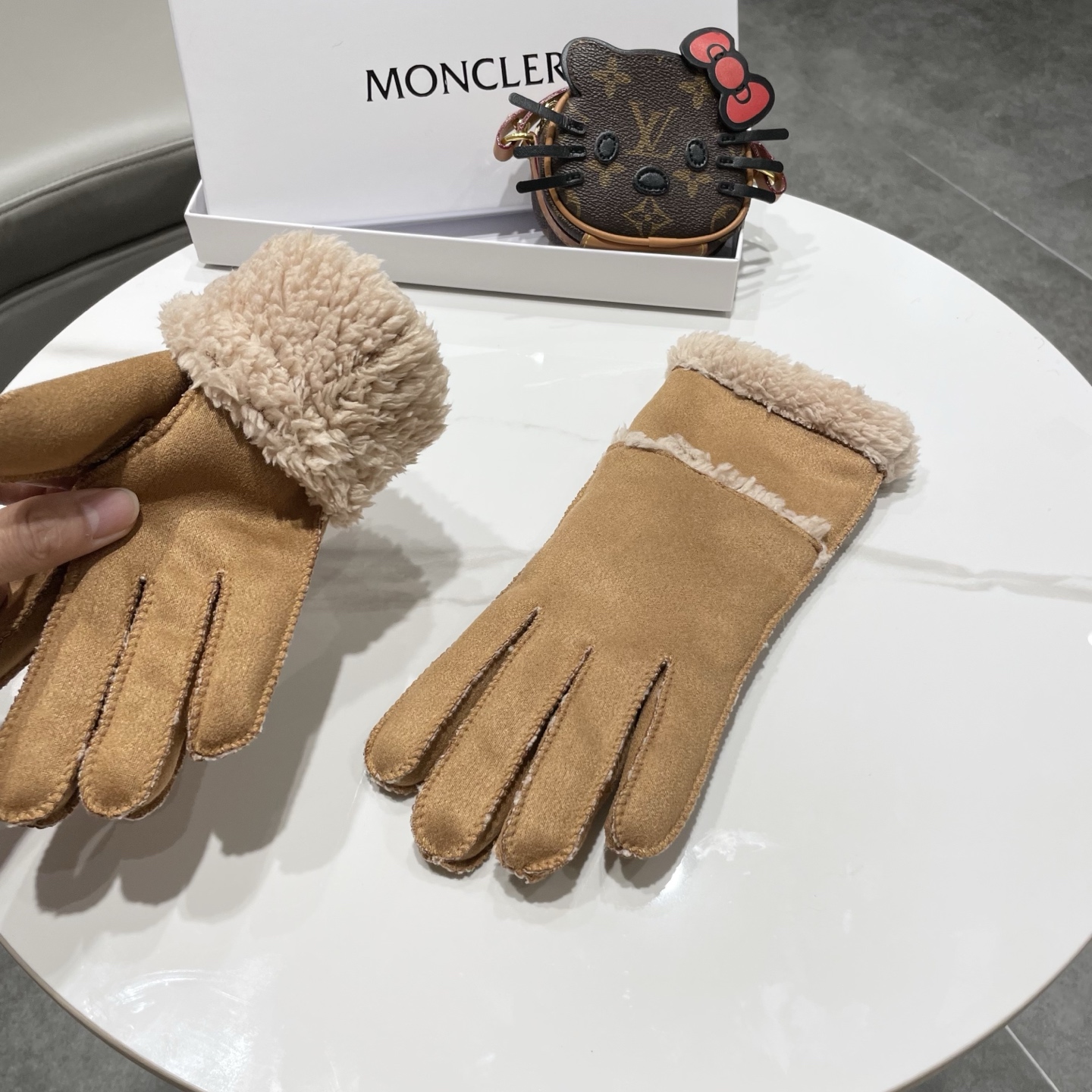 P105 蒙口Moncle美式复古冬季保暖手套女款麂皮毛绒户外骑行滑雪防风防冻五指套潮