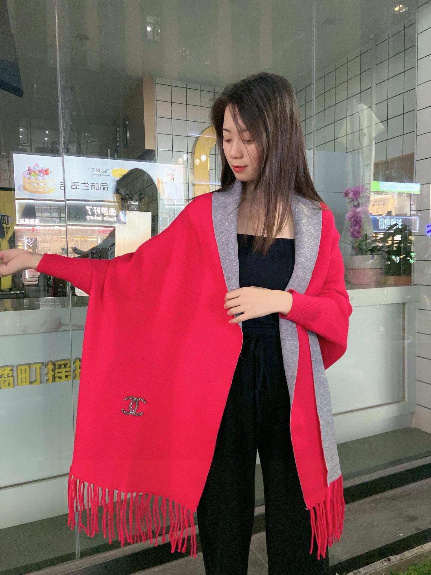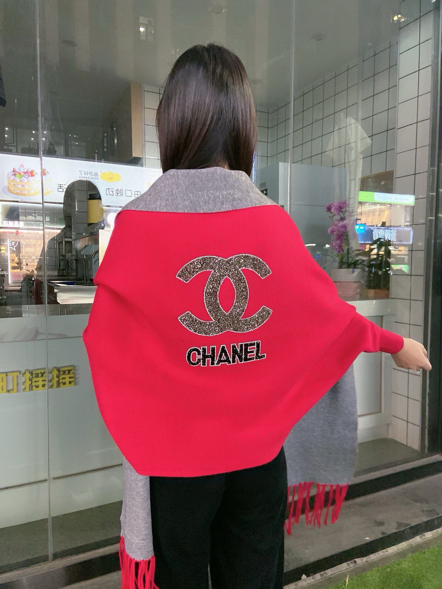 P220🎀香奈儿披肩🎁Chanel ♥️最新进口中东钻新款披肩,采用上等羊毛➕进口包芯纱面料,采用最新款式图案;颜色图案设计都很费时费料款式新颖不挑身材上身效果大牌范十足💋此款实物更美💐专柜品质,时尚精典挡不住的美......均码 黑色 丈青 大红