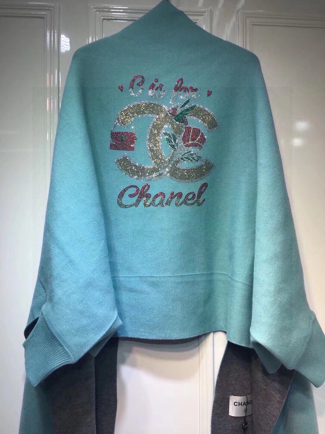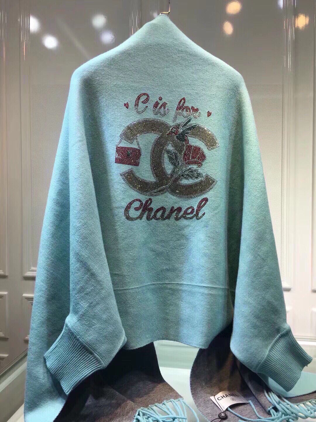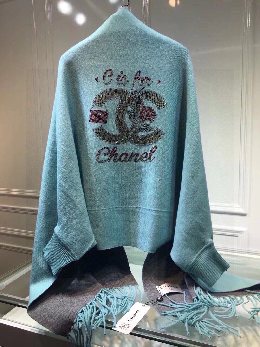 P200🌹香奈儿披肩🎁CHANEL披肩♥️秋冬季新款披肩,重工定制,采用上等羊毛➕进口包芯纱面料, 后背最新款✨图案➕进口钻双C logo凸显品牌的独特魅力!款式新颖不挑身材上身效果大牌范十足💋此款的设计让爱美女士自由出入各种场所,💐专柜品质,时尚精典挡不住的美......均码。