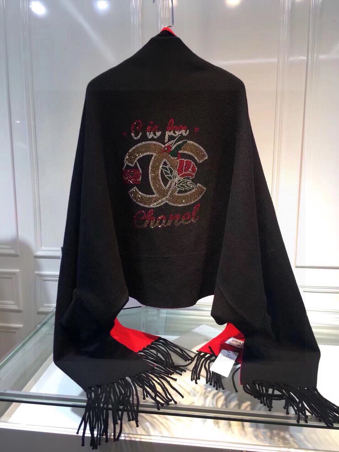 P200🌹香奈儿披肩🎁CHANEL披肩♥️秋冬季新款披肩,重工定制,采用上等羊毛➕进口包芯纱面料, 后背最新款✨图案➕进口钻双C logo凸显品牌的独特魅力!款式新颖不挑身材上身效果大牌范十足💋此款的设计让爱美女士自由出入各种场所,💐专柜品质,时尚精典挡不住的美......均码。