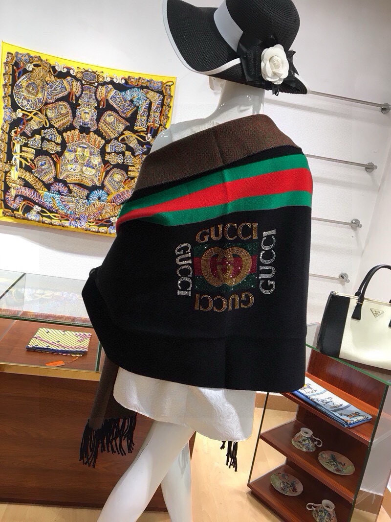 P220🎀GUCCl古奇披肩♥️冬季新款披肩,采用上等羊毛➕进口包芯纱面料,和中东钻,闪闪发亮,绝不掉钻,图案更是G家最新款式图案;款式新颖不挑身材上身效果大牌范十足💋此款实物更美💐专柜品质,时尚精典挡不住的美......均码,3色可选:藏青色 咖啡色 黑色