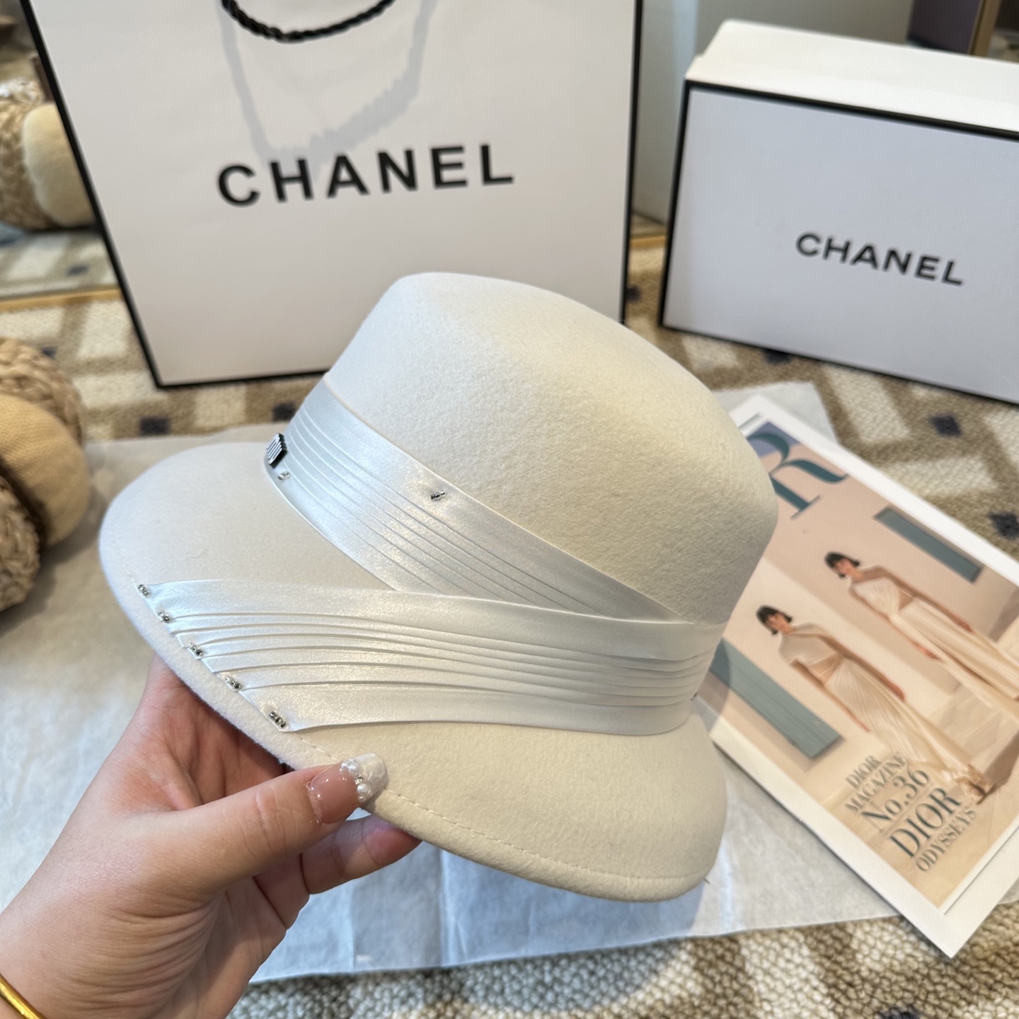 白色P120 🆕miumiu25秋冬新款 🔗法式复古羊毛礼帽 📸名媛范百搭拍照出片 📦黑色 白色 卡其色