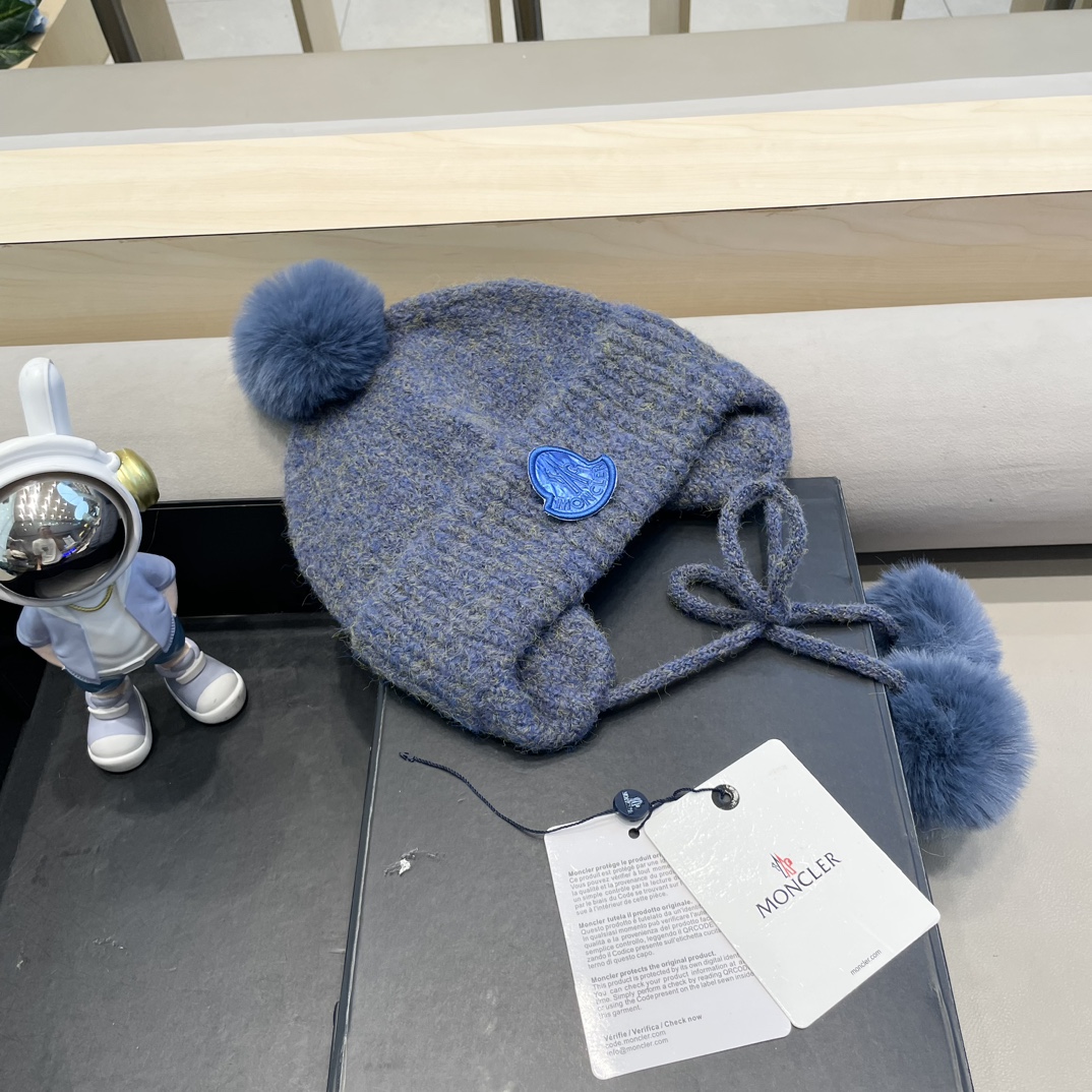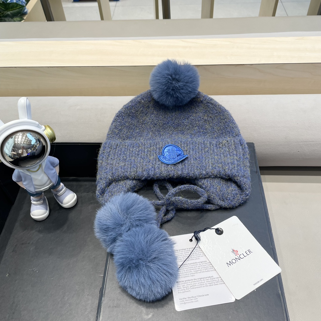 P90 moncler秋冬保暖兔毛球针织帽可爱加绒防风防寒护耳百搭雷锋帽包头毛线帽