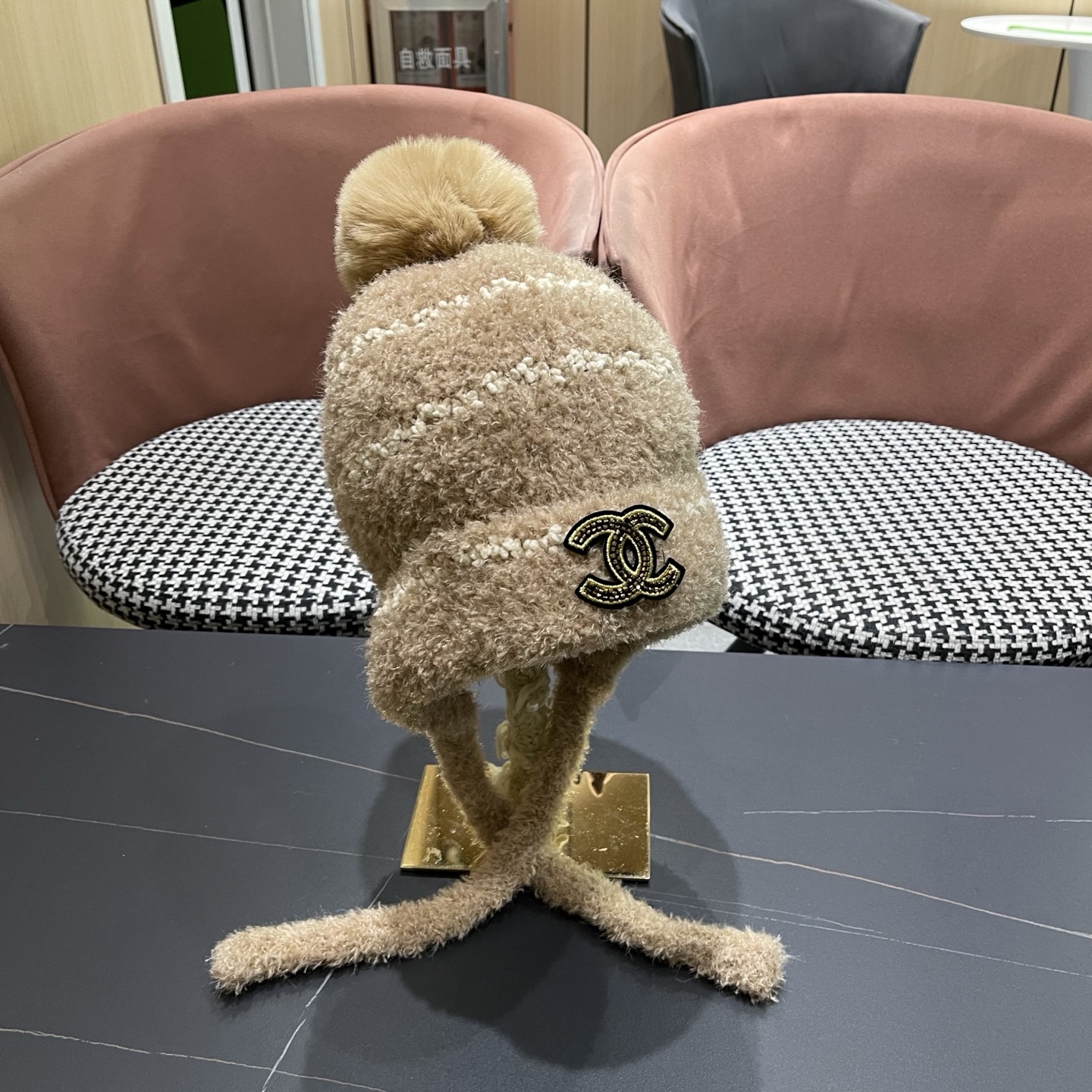 p80 香奈儿CHANE2025新款秋冬季毛绒帽子女加厚保暖护耳针织帽百搭显脸小包头帽潮