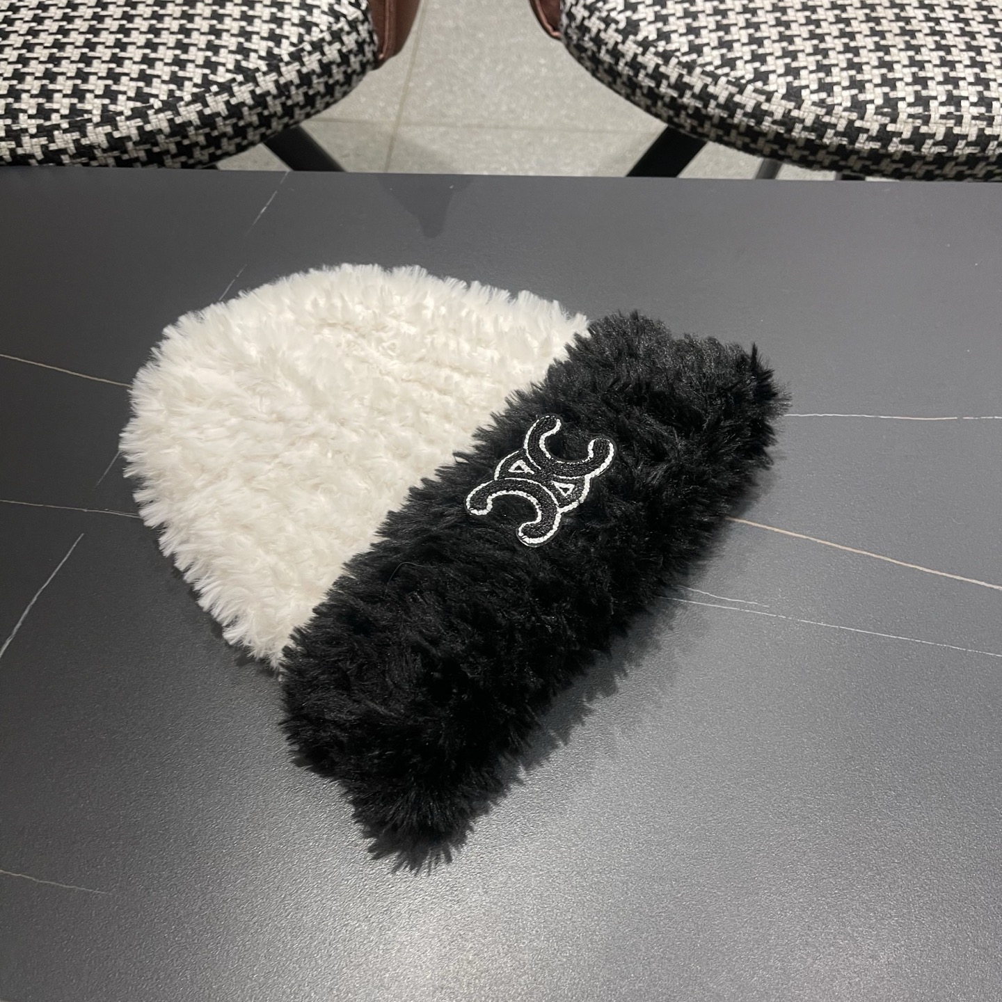 p80 Celine 赛琳 保暖毛绒绒针织帽子女秋冬季百搭护耳包头 帽2025新款显脸小防寒帽