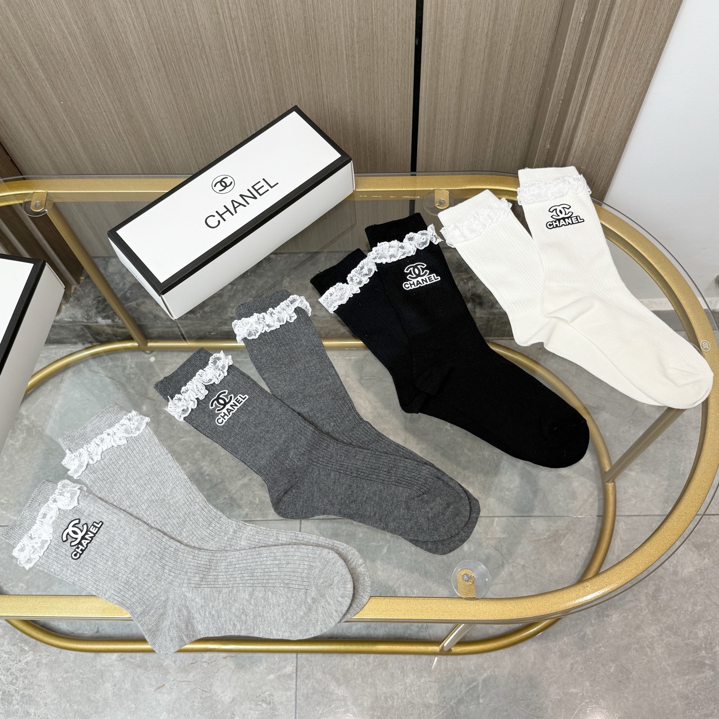 P75 配包装【一盒四双】CHANEL 香奈儿高版本 ~好看到爆炸 CHANEL 袜子🔥烫印中筒袜,超精致🔥🔥潮人必不能少的 CHANEL 专柜代购品质 中筒袜子 ,搭配起来超高逼格 时髦度爆表啊啊啊啊~~推荐推荐推荐~~必入时髦小单品!!!