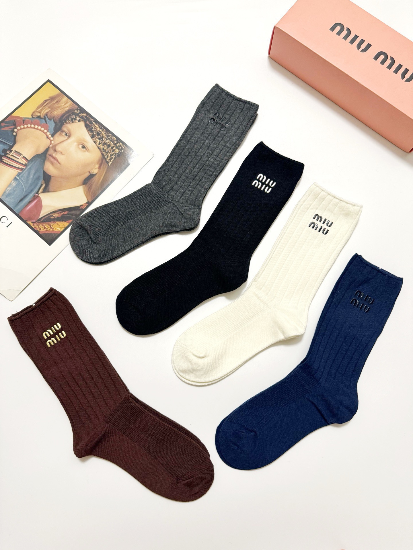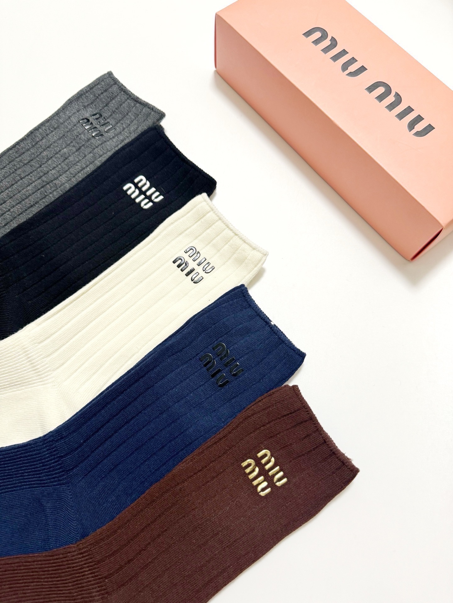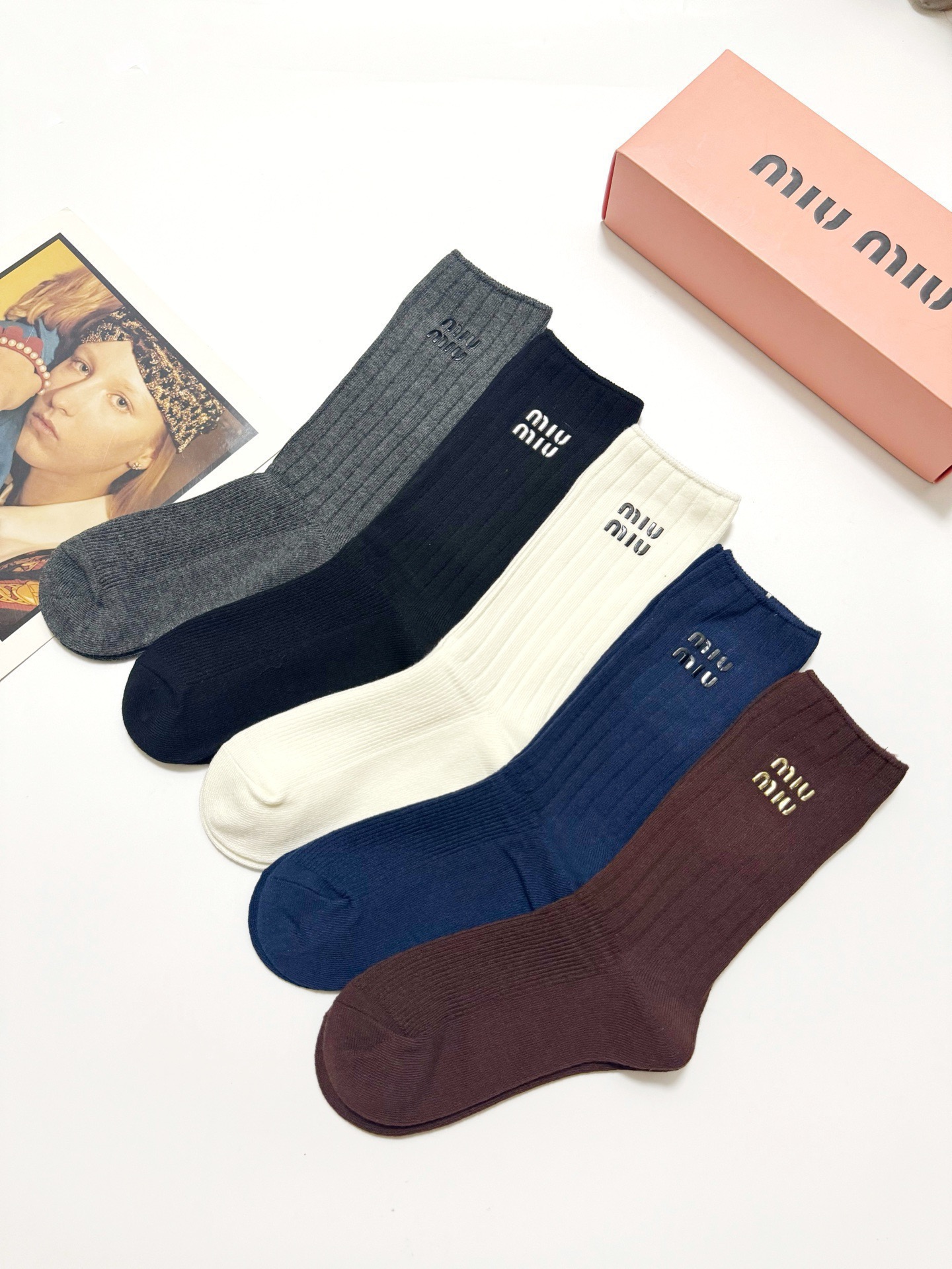 P50 配包装 🌟【一盒5 双】 🌟缪缪 miumiu 经典字母 logo纯棉 中筒袜 !超级软糯亲肤! 🌟ins爆款!专柜在售ing 🌟好看到爆炸 !🌟超高品质!经典不过时!潮人必不能少的专柜代购品质 ,巨好穿!推荐推荐推荐~~必入小单品!!