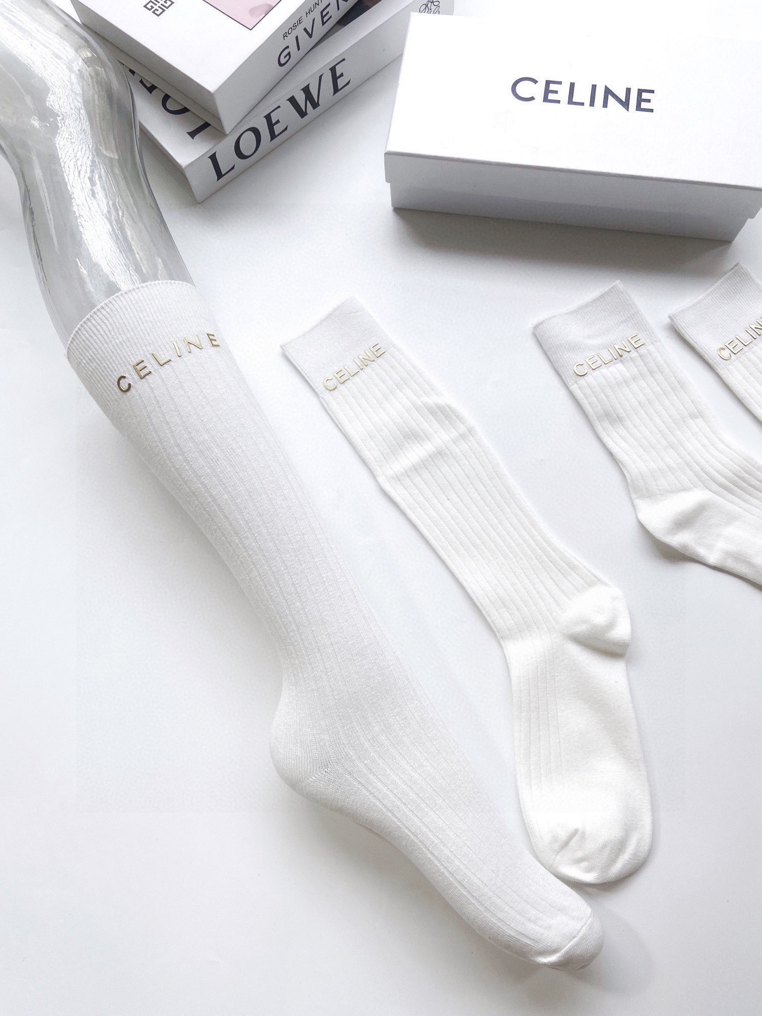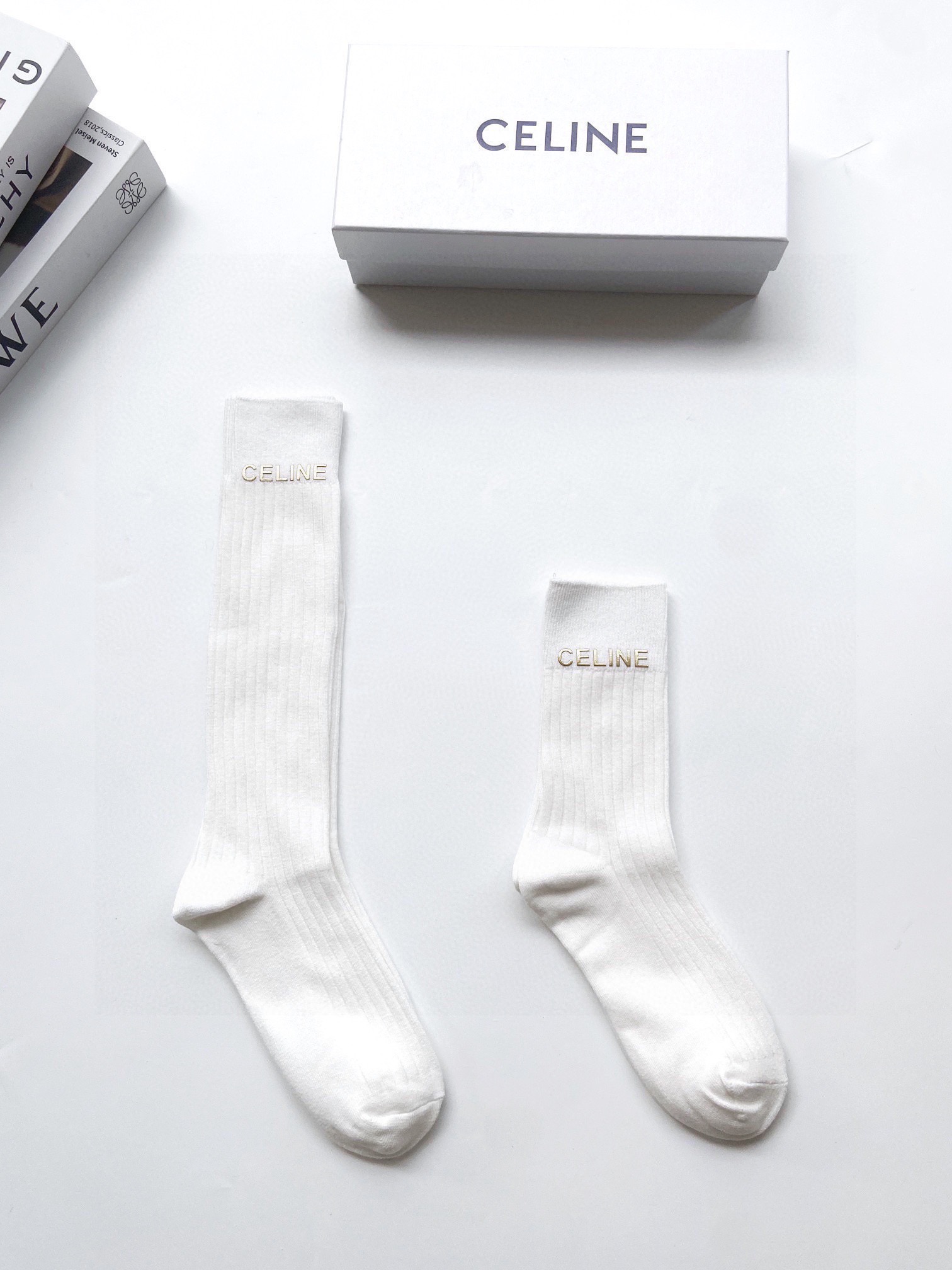 P50 配包装 🌟【一盒2 双】 🌟Celine 赛琳 经典字母logo 纯棉中筒袜 小腿袜 🌟ins爆款!专柜在售ing 🌟好看到爆炸 !🌟超高品质!经典不过时!潮人必不能少的专柜代购品质 ,巨好穿!推荐推荐推荐~~必入小单品!!