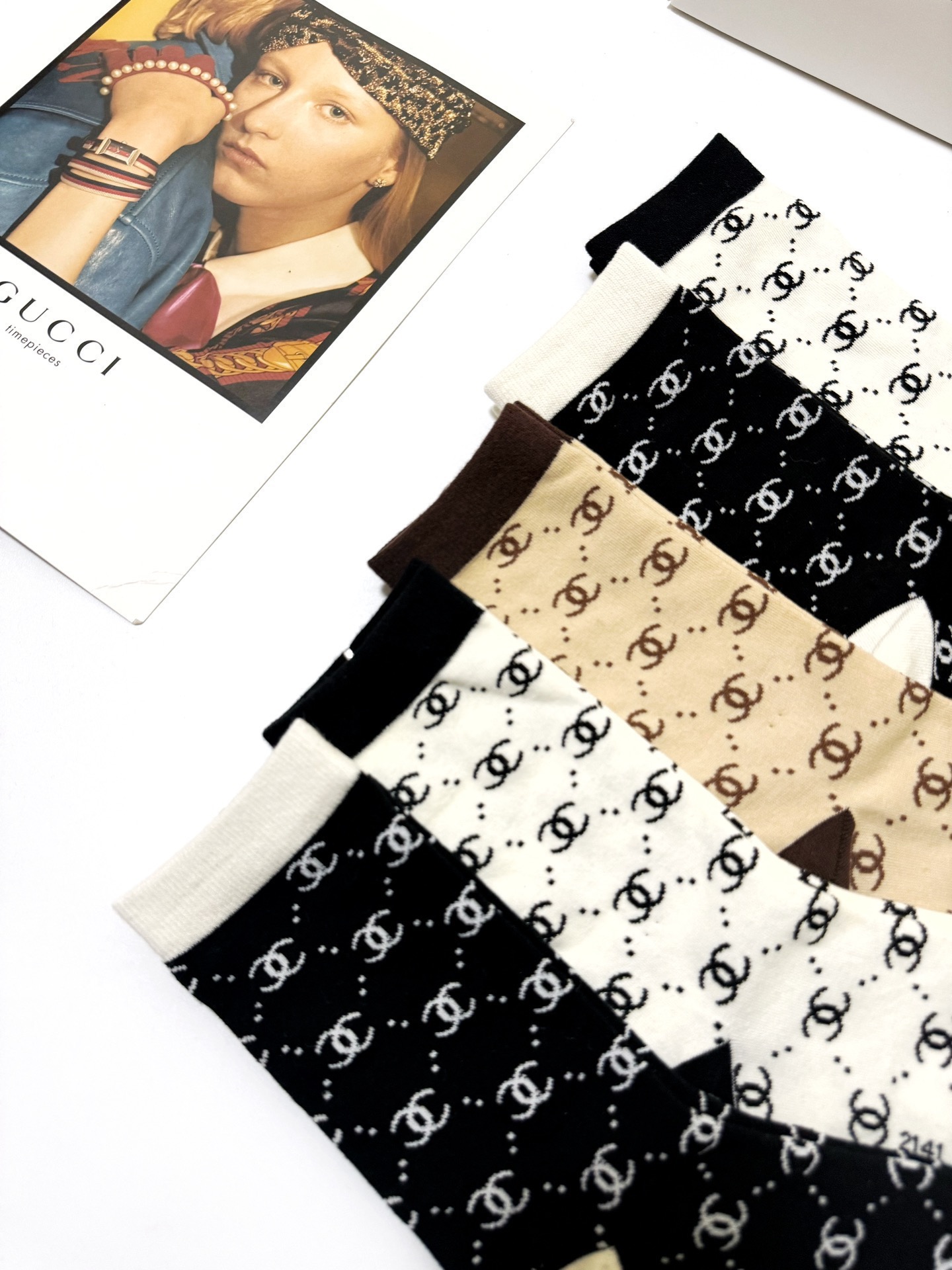 P50 配包装 🌟【一盒5 双】 🌟Chanel 香奈儿 经典字母 logo纯棉 中筒袜 !超级软糯亲肤! 🌟ins爆款!专柜在售ing 🌟好看到爆炸 !🌟超高品质!经典不过时!潮人必不能少的专柜代购品质 ,巨好穿!推荐推荐推荐~~必入小单品!!