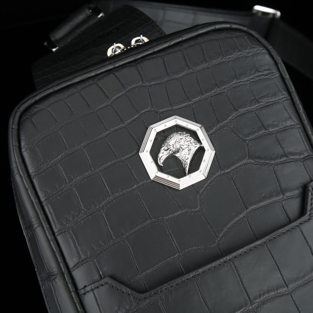 实拍图📸 国产 雾面鳄鱼肚皮🐊🐊史蒂芬 胸包💼⚠️纯钢五金 ⚠️【内里配头层牛皮】 尺寸 30*18*8