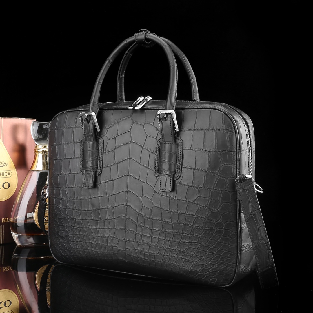 实拍图📸 国产 雾面超大竹节鳄鱼肚皮🐊🐊普拉达款公文包💼⚠️纯钢五金 ⚠️【内里配头层牛皮】 尺寸 39*28*9💰3300