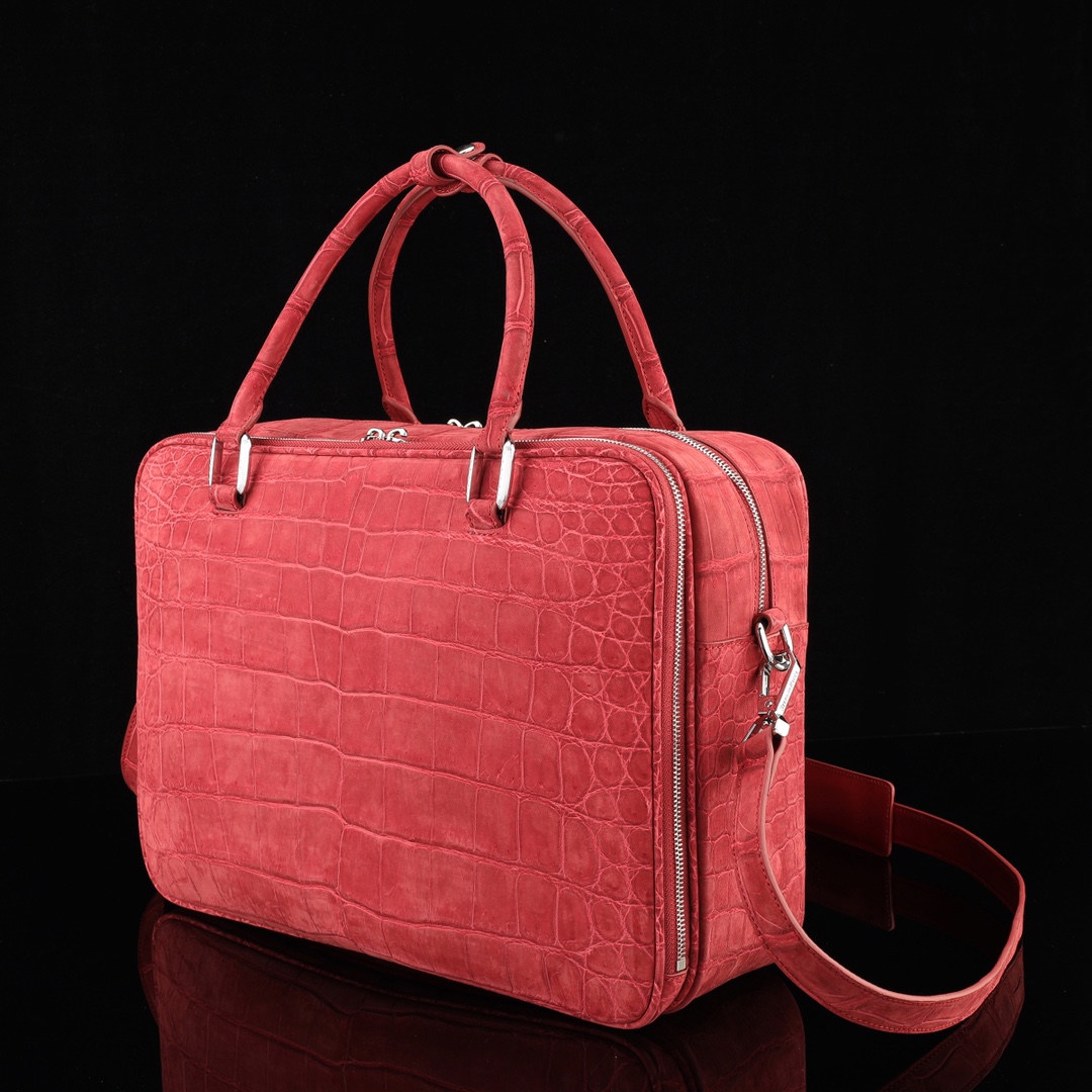 实拍图📸 国产磨砂鳄鱼肚皮🐊🐊公文包💼⚠️纯钢五金 ⚠️【内里配头层牛皮】 尺寸 39*27*14