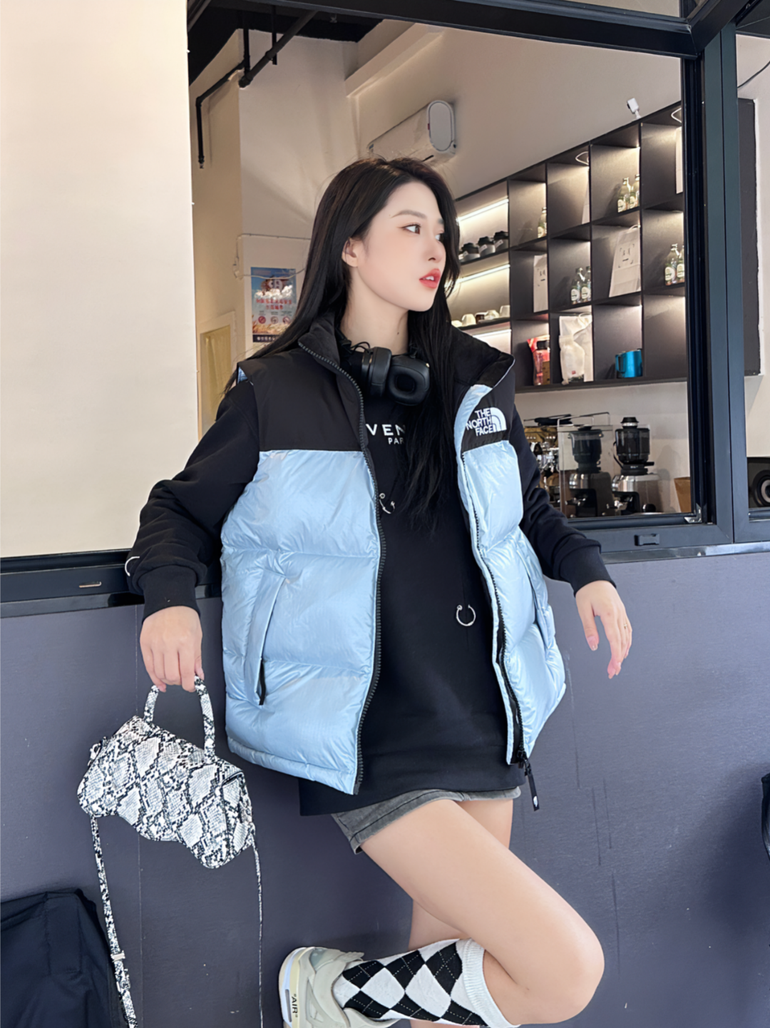 北面大格子亮面马甲