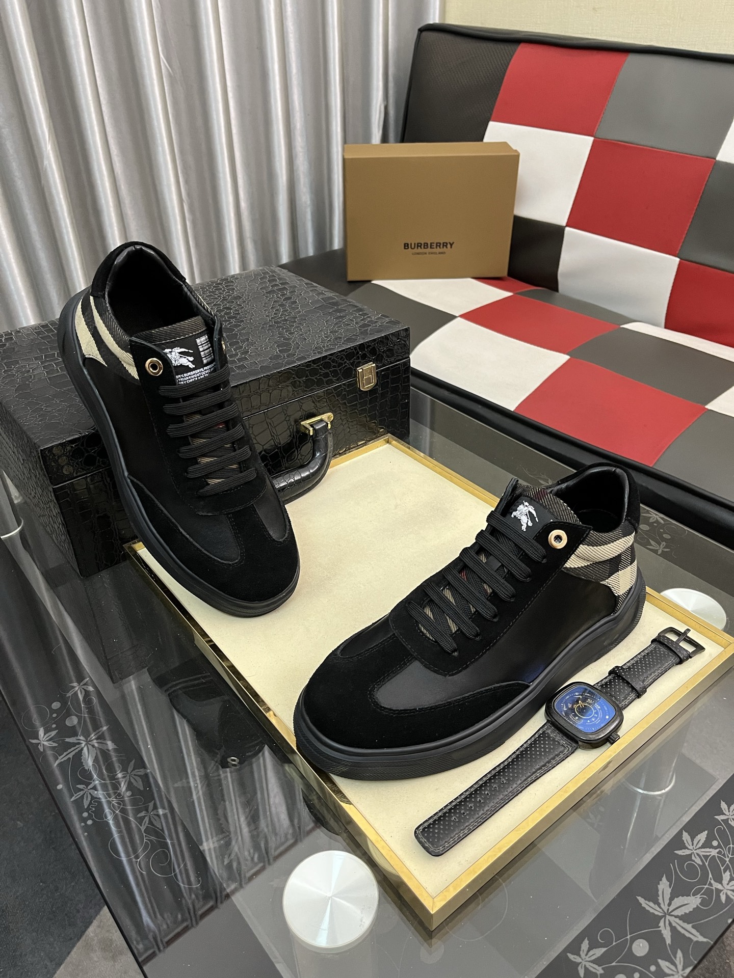 出厂价:280⌚️⌚️《 巴宝莉BURBDRRY》 最新•爆款休闲鞋,顶端品牌[勾引]奢侈~代购,鞋面選用进口牛皮拼接布原版材质➕高端皮里(•)精细做工。原版个性时尚柔软橡膠耐磨大底,上脚轻巧舒适,38-442⃣️色可选