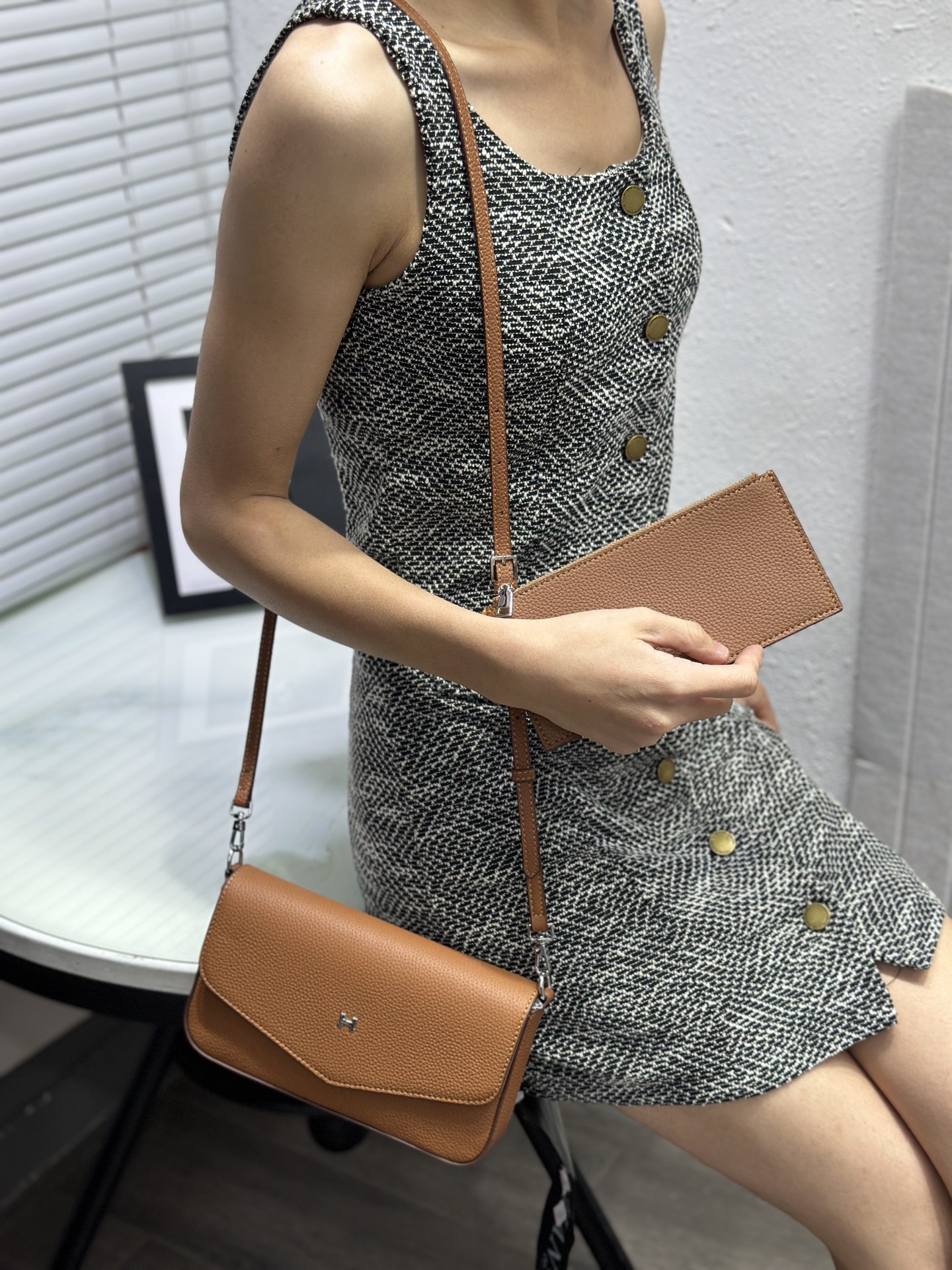 HERMES 新款New arrives 💰265 全皮单肩斜挎包,两件套 可手拎单肩斜挎,内有一零钱袋 肩带可拆卸,可以调节长短 尺寸:21.5*3*13cm 采用togo小牛皮制作而成 款号:355 九个颜色