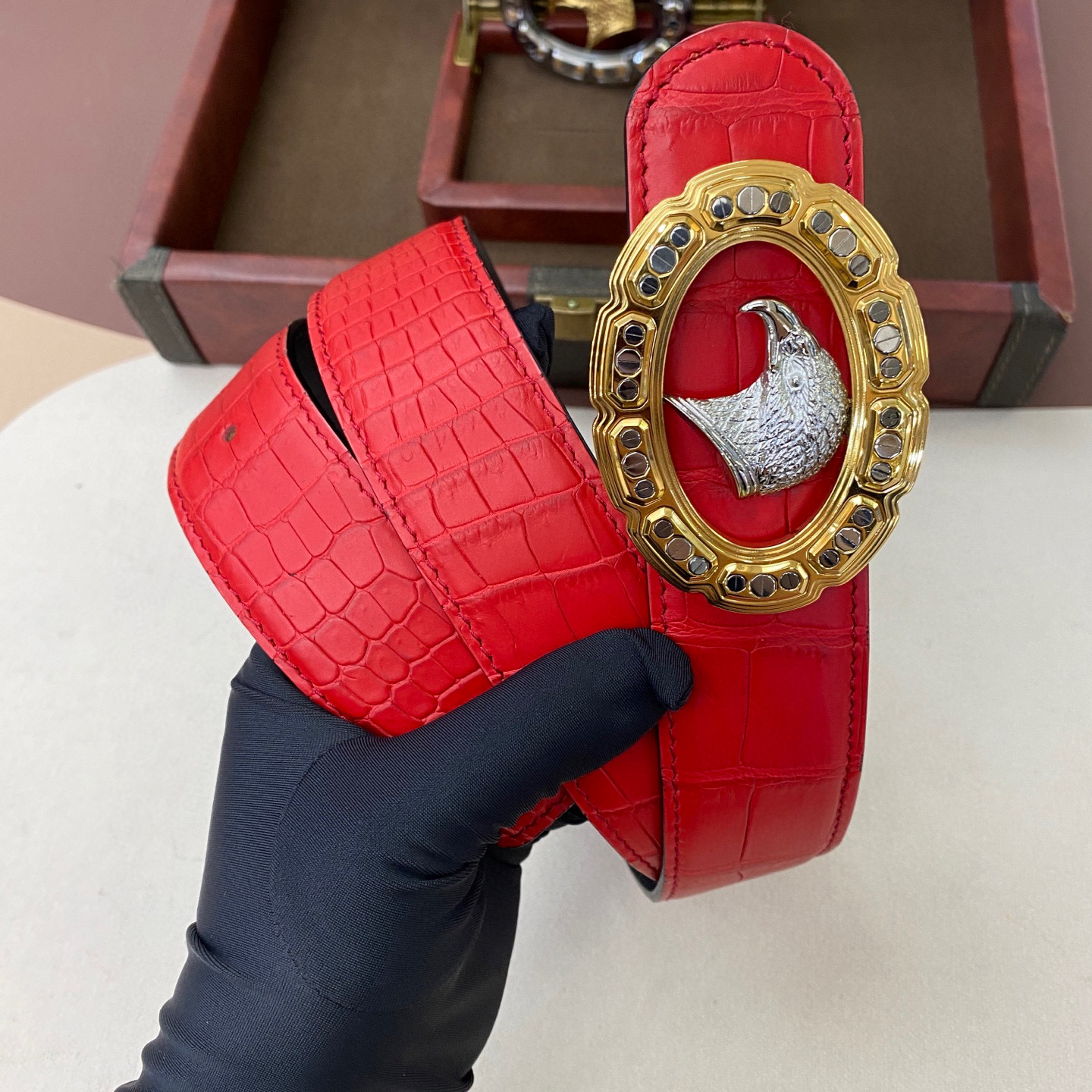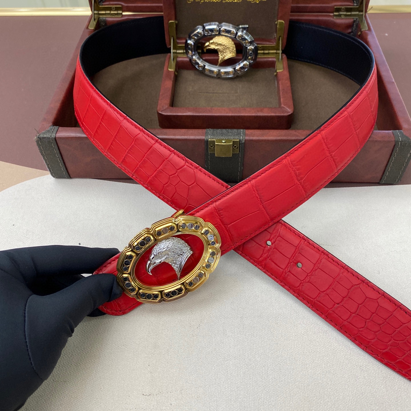 水染雾面🙏A级🙏奢华高贵🎉上档次🎉鳄鱼肚皮出货🎉[胜利]转图大卖[闪电][玫瑰][闪电][玫瑰]搭配史蒂芬鹰头手工镶钻玫瑰]宽度:3.8cm⚡🌹长度100-125cm 💰1380