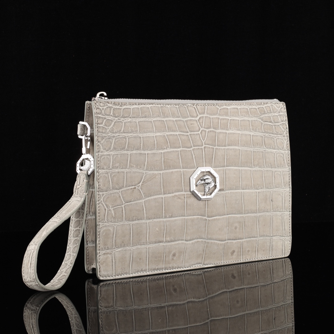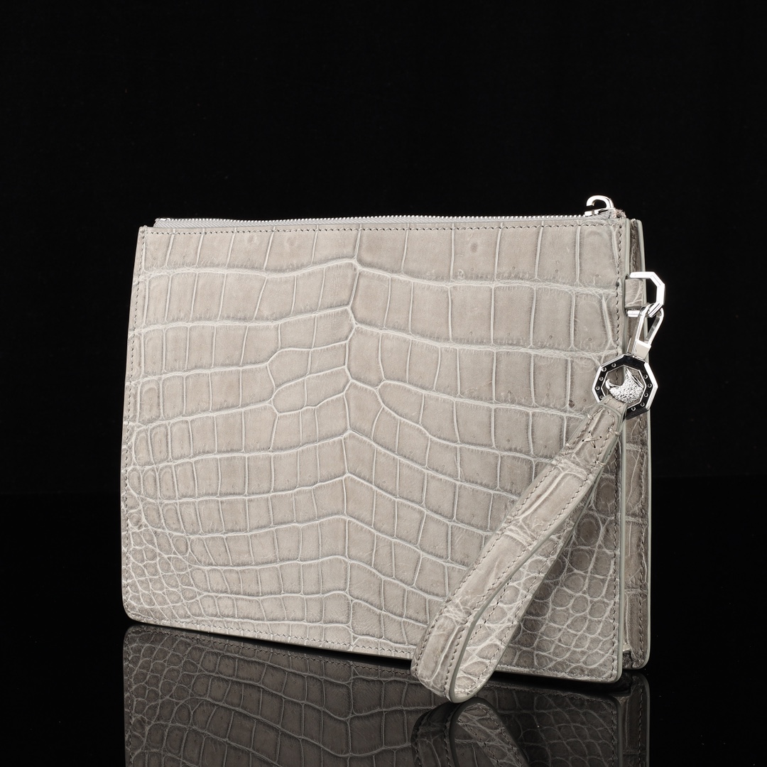 水染尼罗磨砂鳄鱼肚皮🐊🐊 大牌同款夹包配不锈钢五金😎 【内里配头层牛皮】尺寸 27*20*4