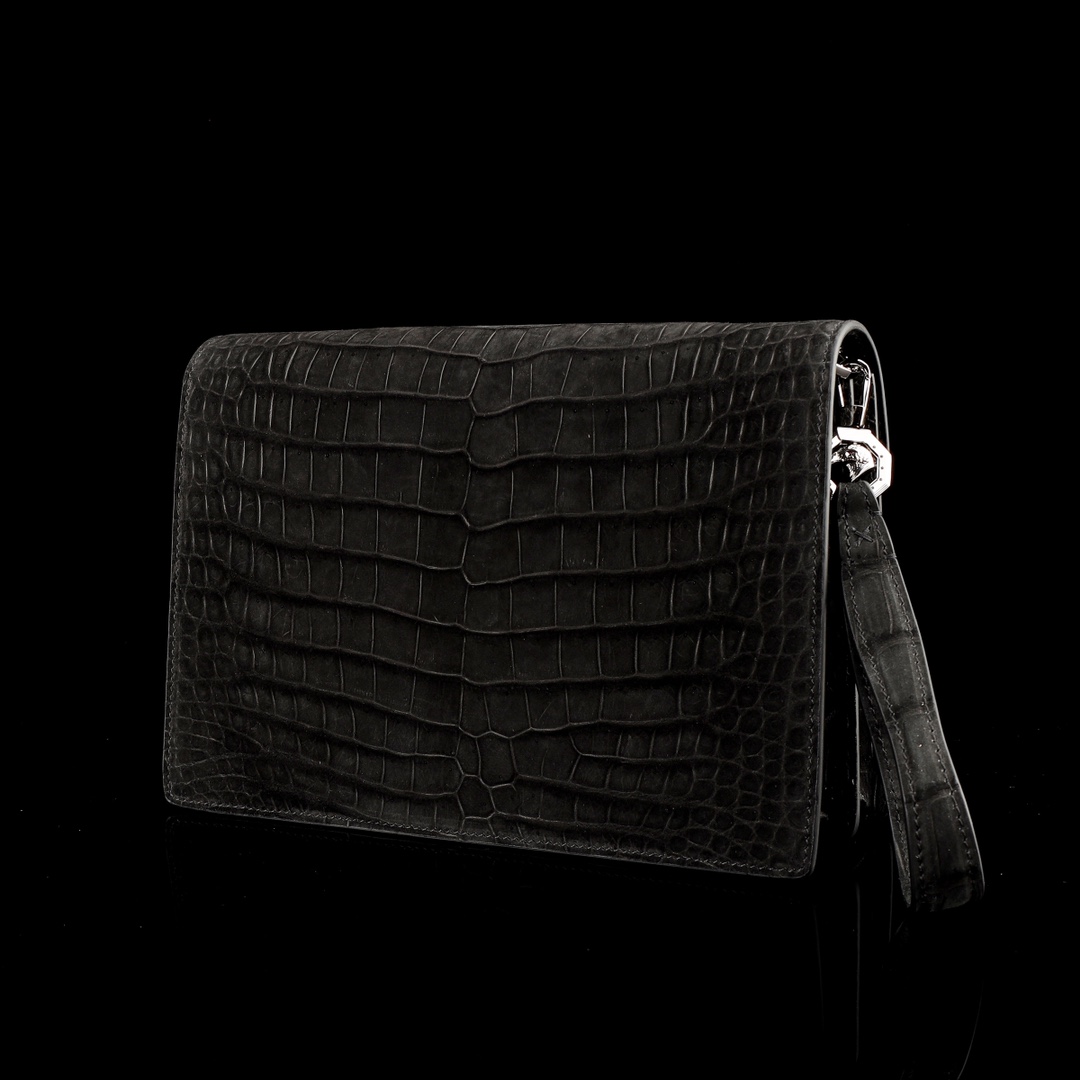 水染磨砂尼罗鳄鱼肚皮🐊🐊 史蒂芬夹包配不锈钢五金😎 【内里配头层牛皮】尺寸 27*18*7💰2500