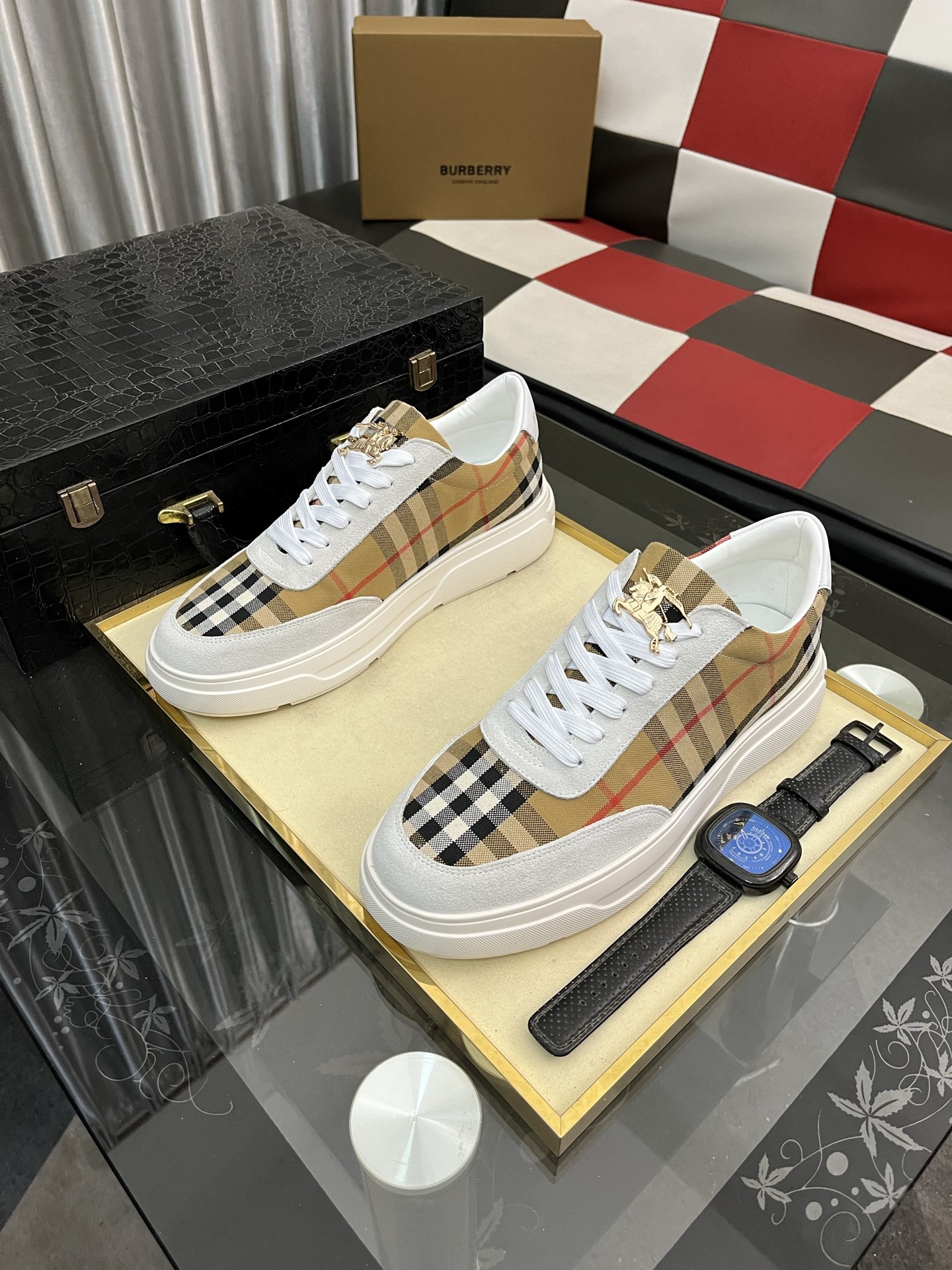 出厂价:280⌚️⌚️《 巴宝莉* 》 最新•爆款休闲鞋,顶端品牌[勾引]奢侈~代购,顶级~质量。[强]鞋面選用进口透气牛皮搭配布面材质➕透气羊皮垫脚(•)精细做工。原版个性时尚柔软橡膠耐磨大底,上脚轻巧舒适,码数: 38-443️⃣色可选