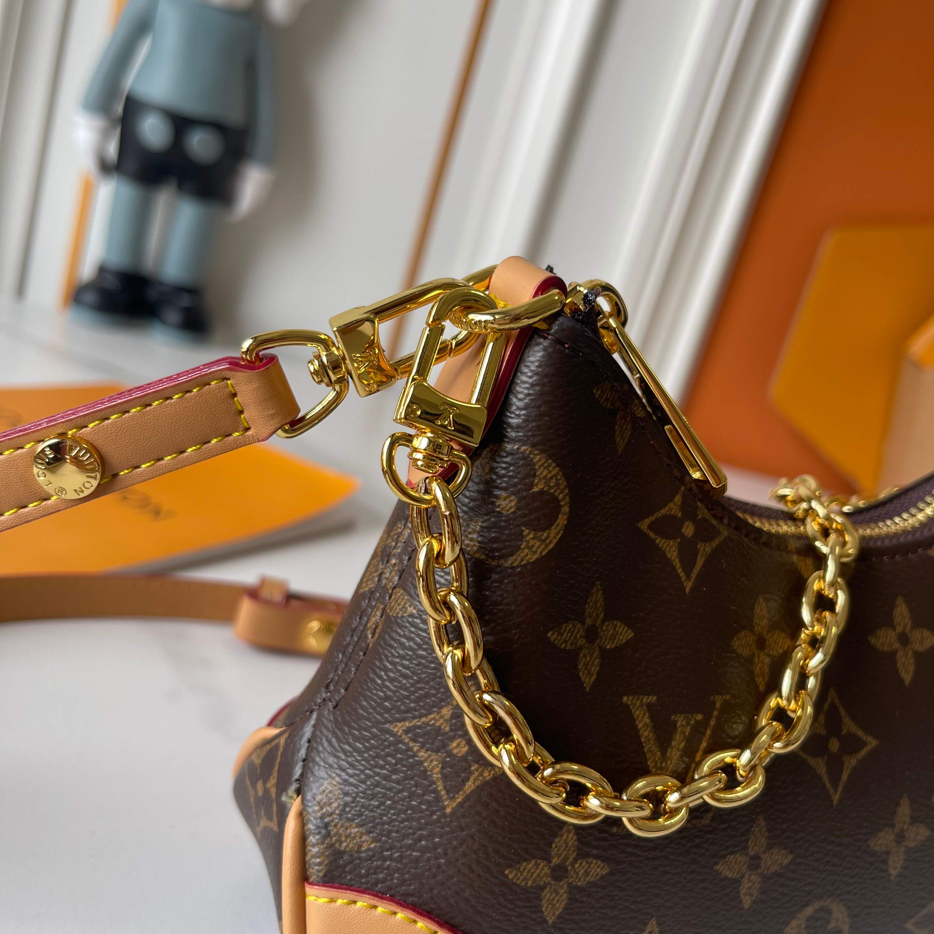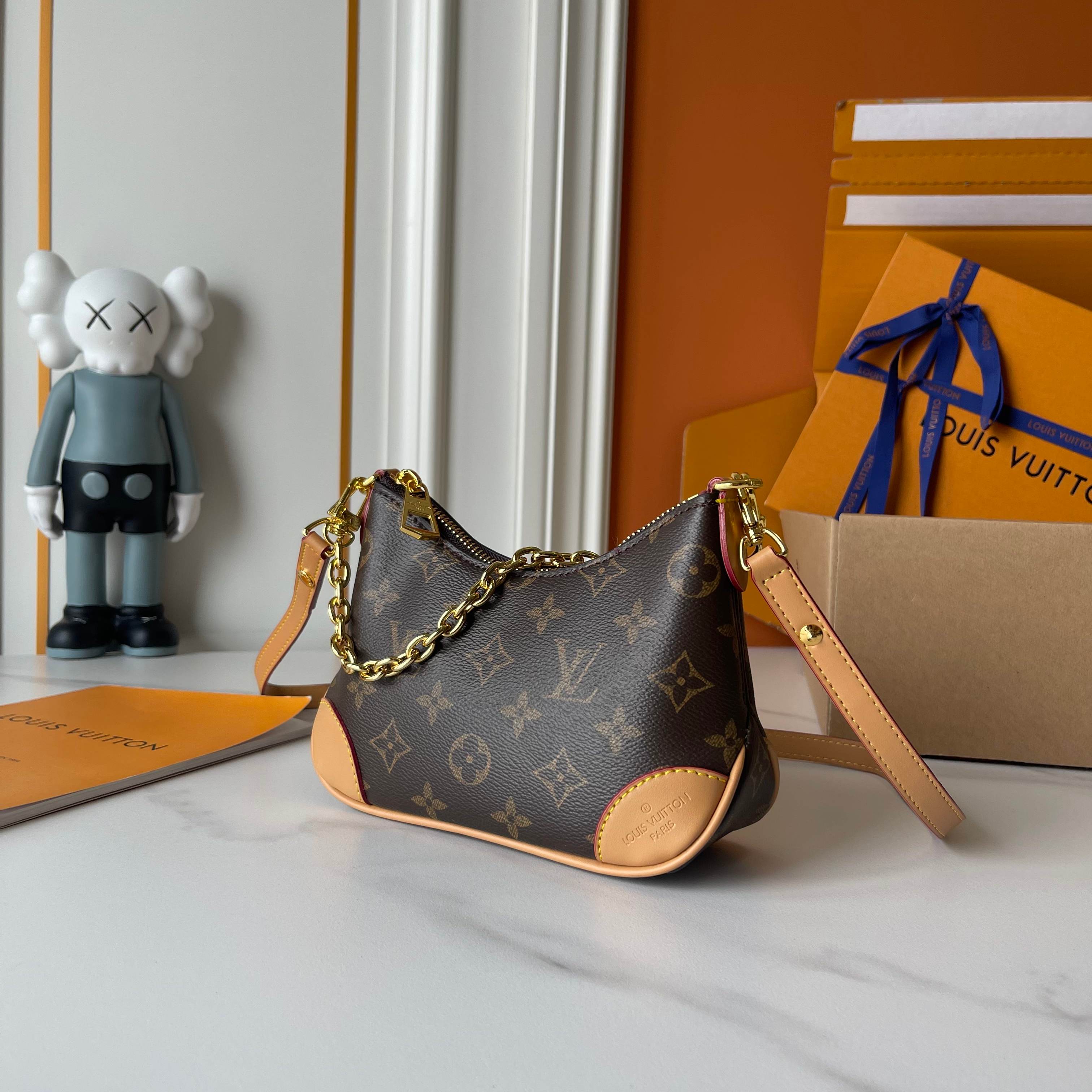p250 M25519老花 迷你牛角包 NANO BOULOGNE 牛角包手袋 45832 45831 Boulogne 手袋取材经典 Monogram 帆布,配有双拉链和可容纳 iPhone 12 Pro 手机的宽敞内贴袋。可调节肩带实现斜挎或肩背,取下即可化身小号链条包或手拿包。尺寸:20 x 14 x 6 厘米
