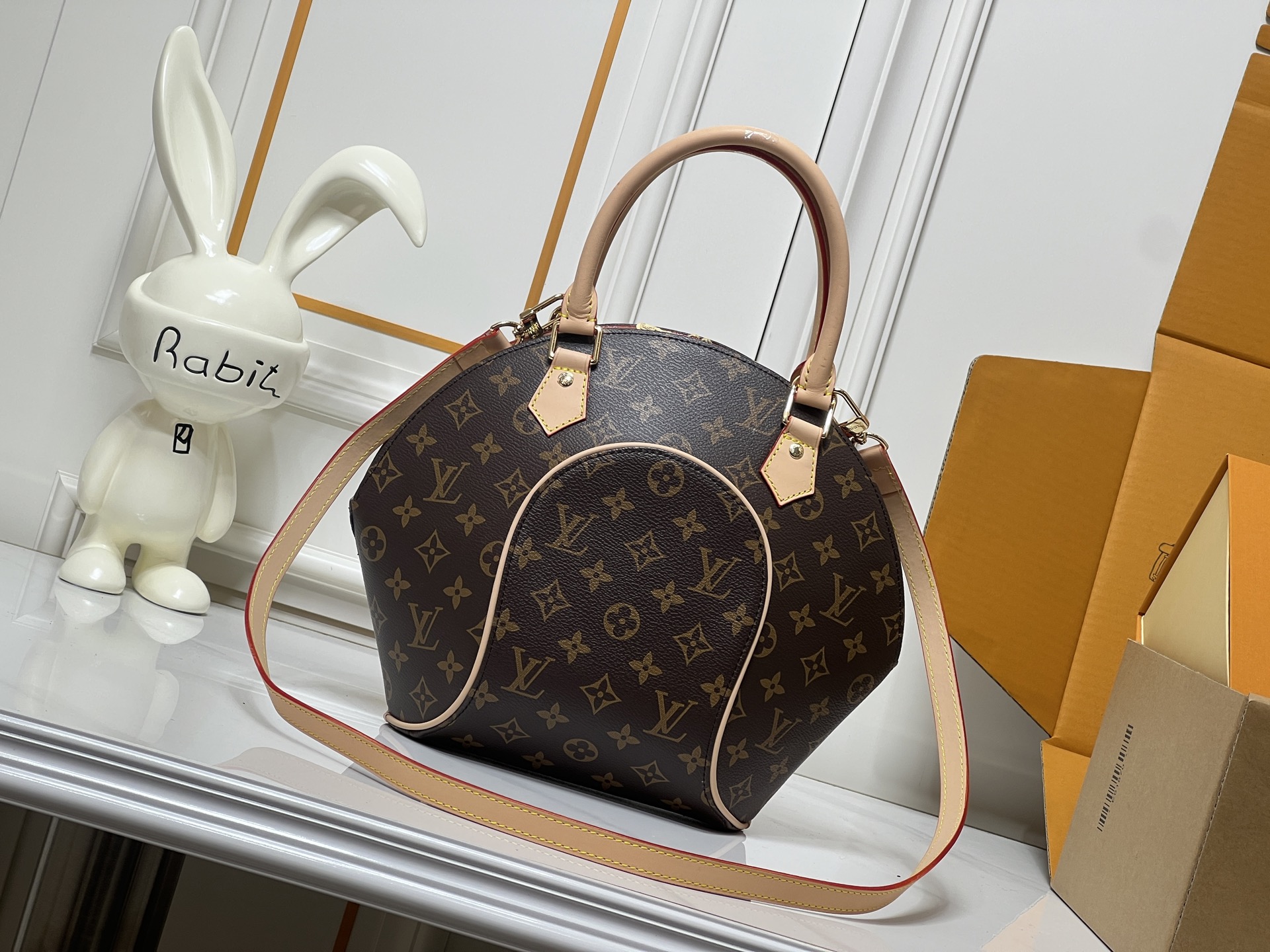 批340💰M51127 本款 Ellipse 中号手袋糅合 Monogram 帆布、皮革饰边和金属件,在摩登线条中流露浓郁复古韵致,成就又一典藏之选。可拆卸并调节的肩带实现肩背和斜挎选择。尺寸:16.25.6