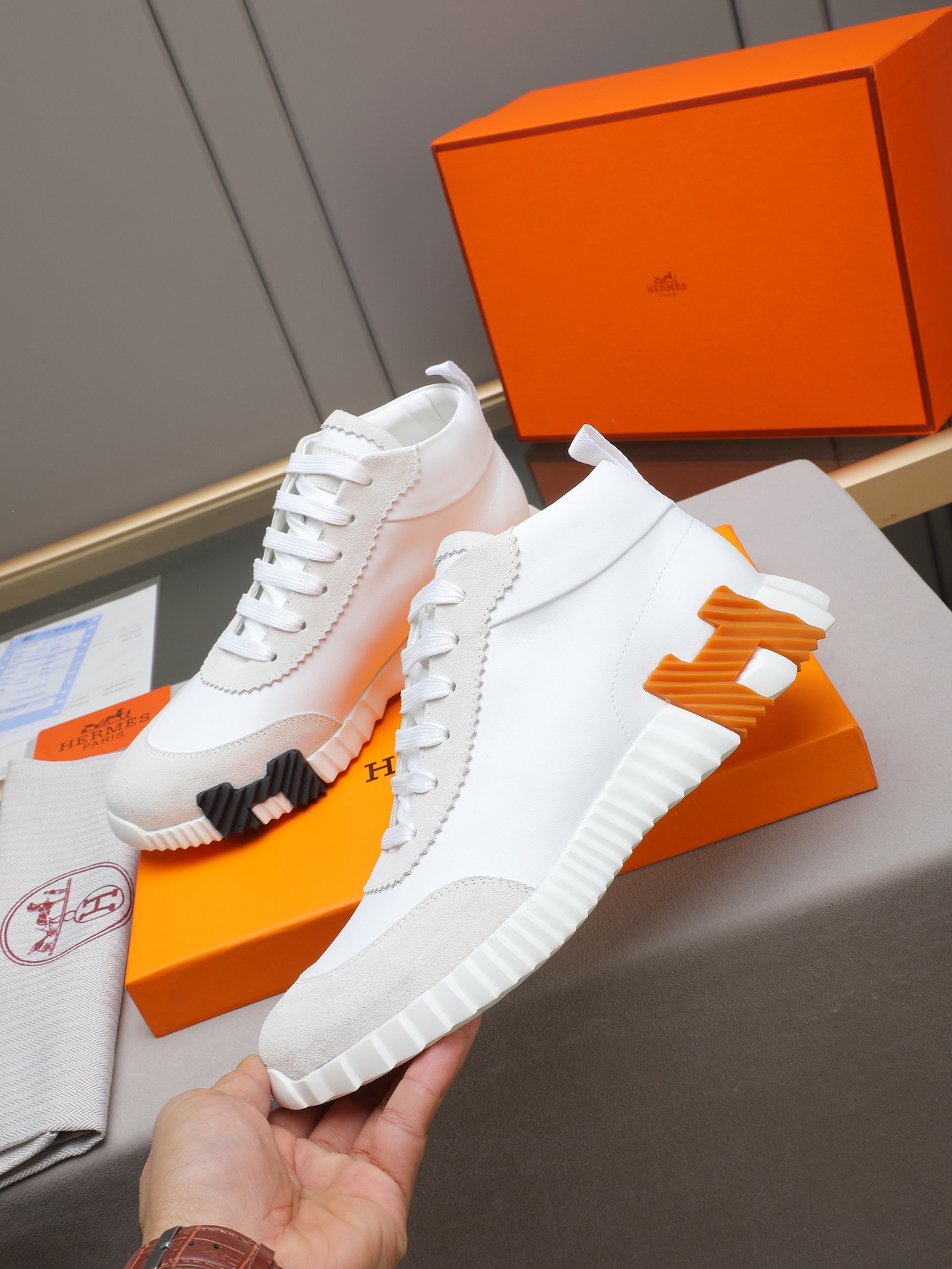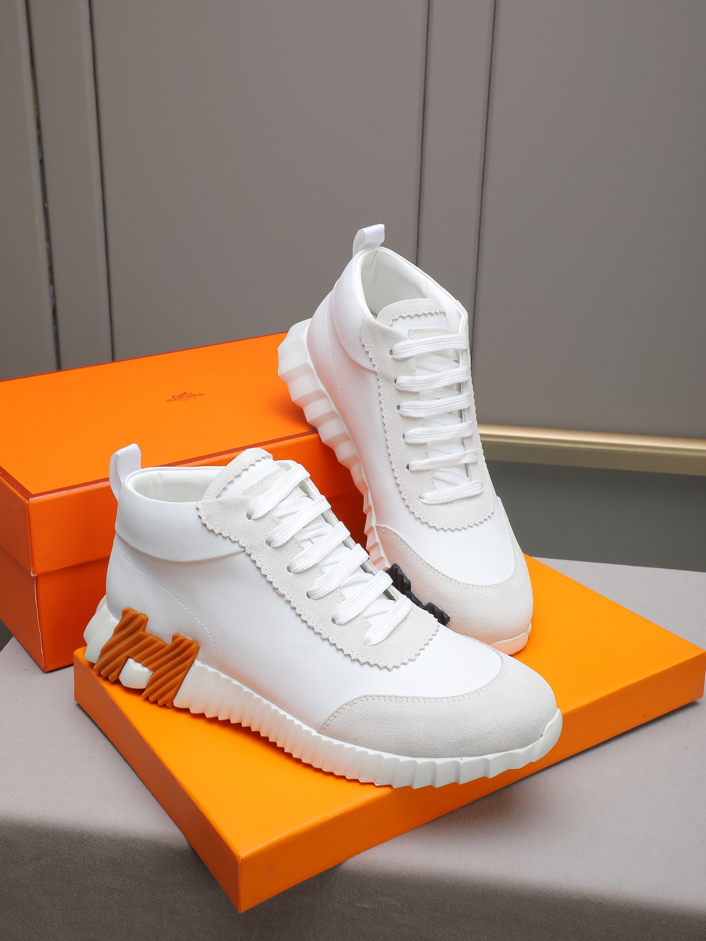 PPP310(Hermes 爱马仕高帮男鞋)🆕男士运动鞋,饰有富有质感的小牛皮细节。拼接原版牛皮面,此鞋款从马术世界汲取灵感,融合技术细节和实用功能.透气羊里,原版组合大底,高端品质,各处细节均完美结合! Size:38-44 (45可定做)