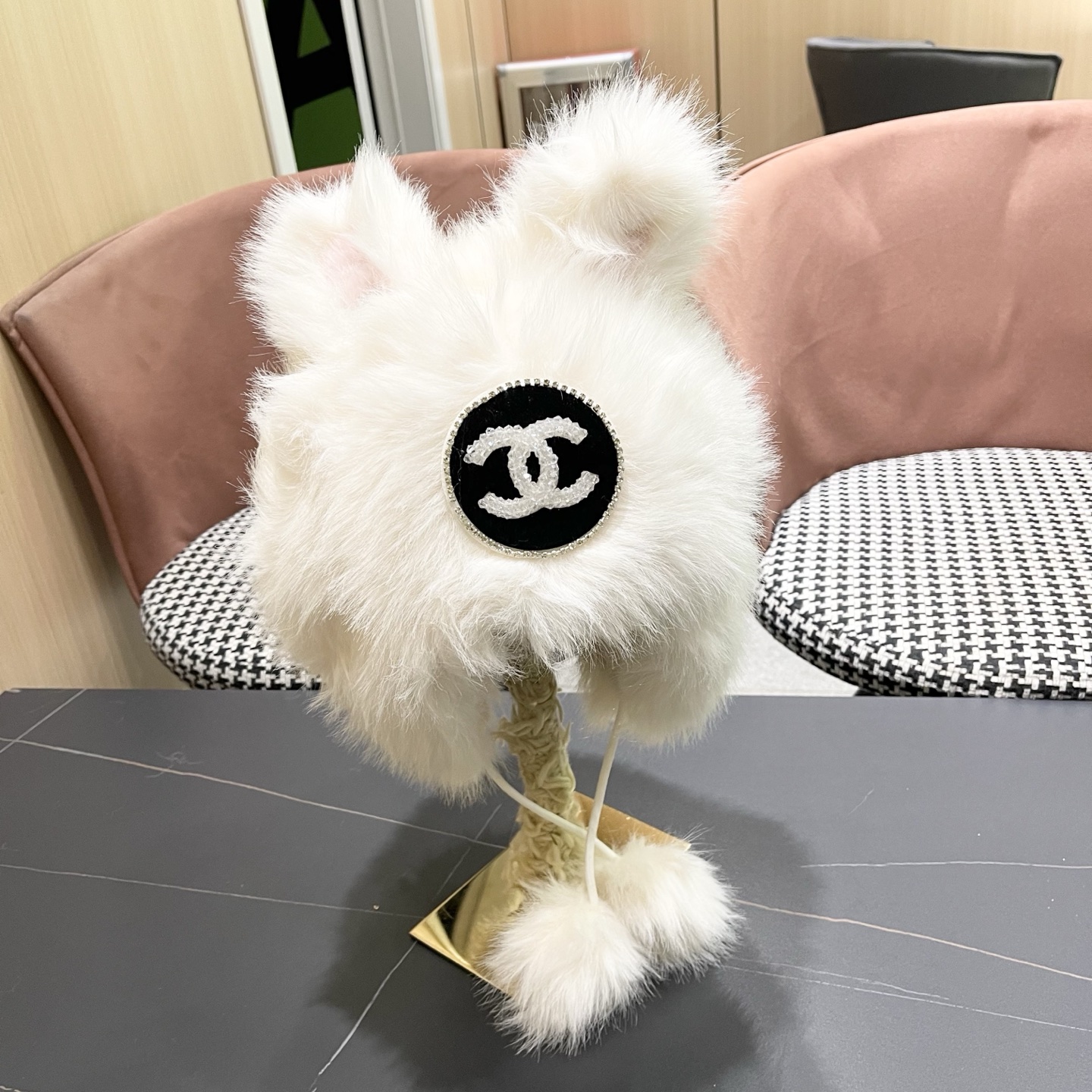 P125 香奈儿CHANEL雷锋帽子女秋冬狐狸毛绒加绒加厚保暖耳朵防寒护耳包头帽潮