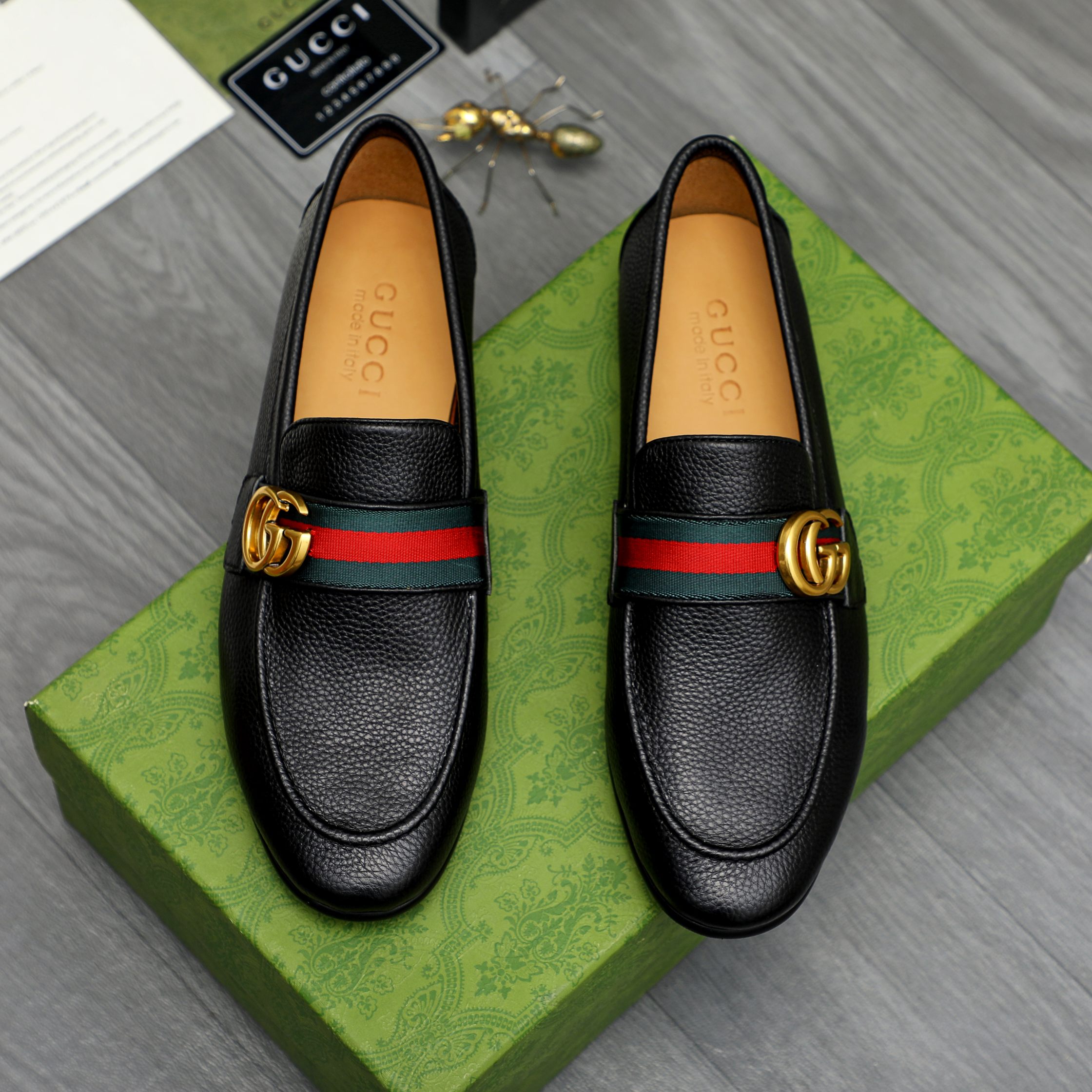 P330 商品商标:GUCCI「 古驰 」商务套脚皮鞋 正码码数: 38-44 (37.45.46定做不退换) 商品材料:精选荔纹牛皮鞋面 牛皮鞋垫 原版大底