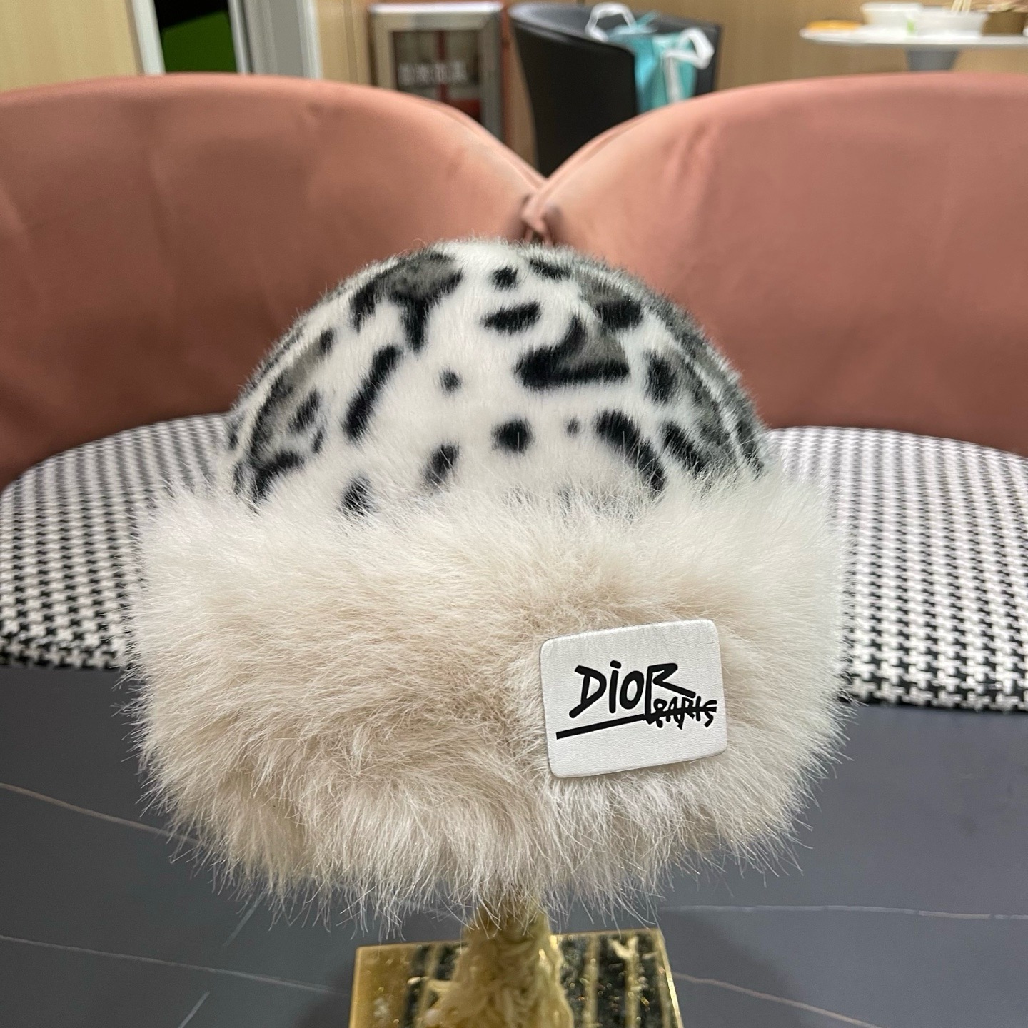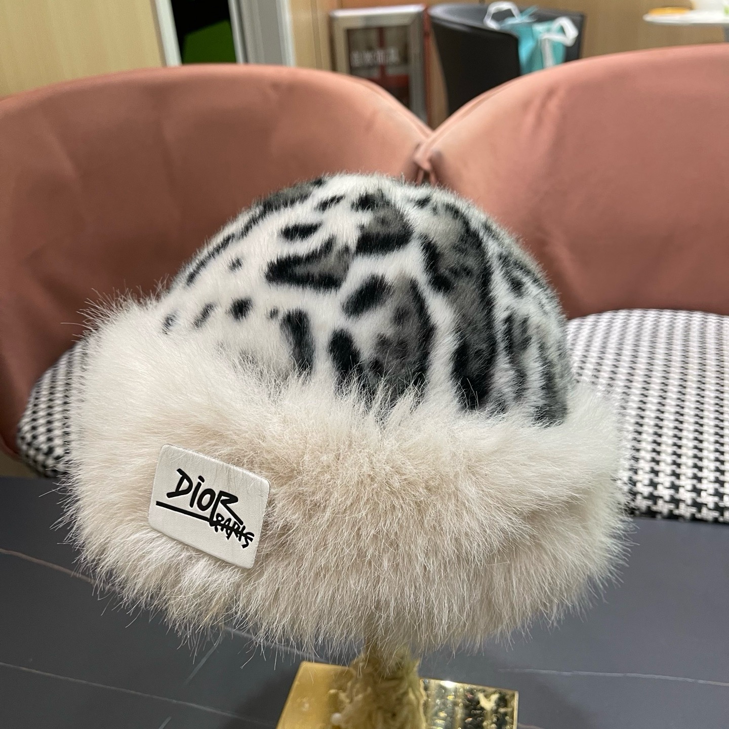 P110 迪奥Dior复古豹纹毛绒帽女冬季百搭显脸小护耳渔夫帽加厚防寒保暖蒙古帽子