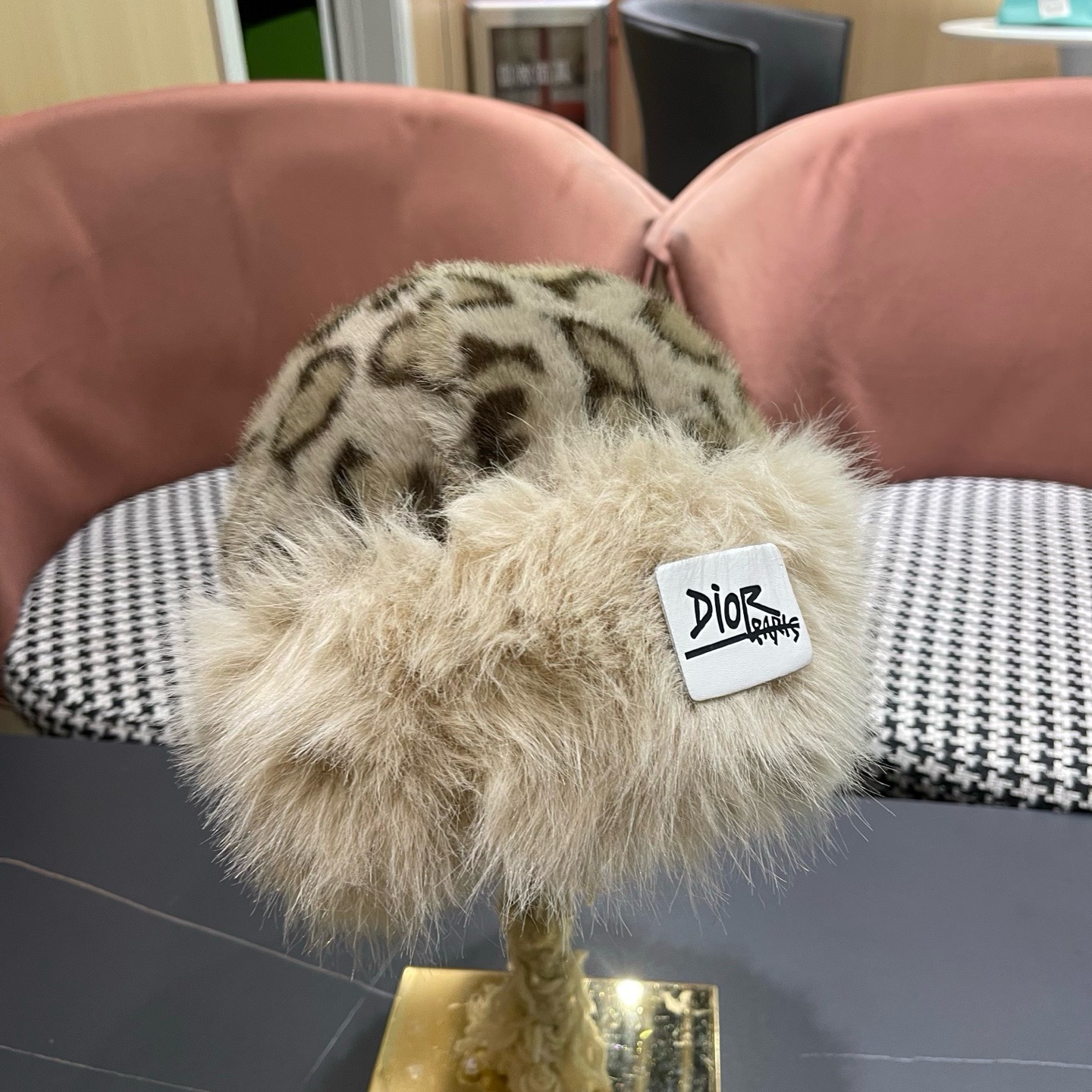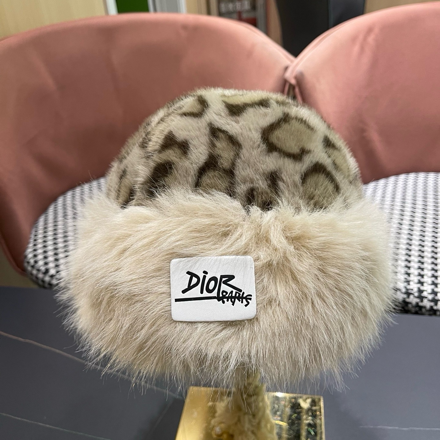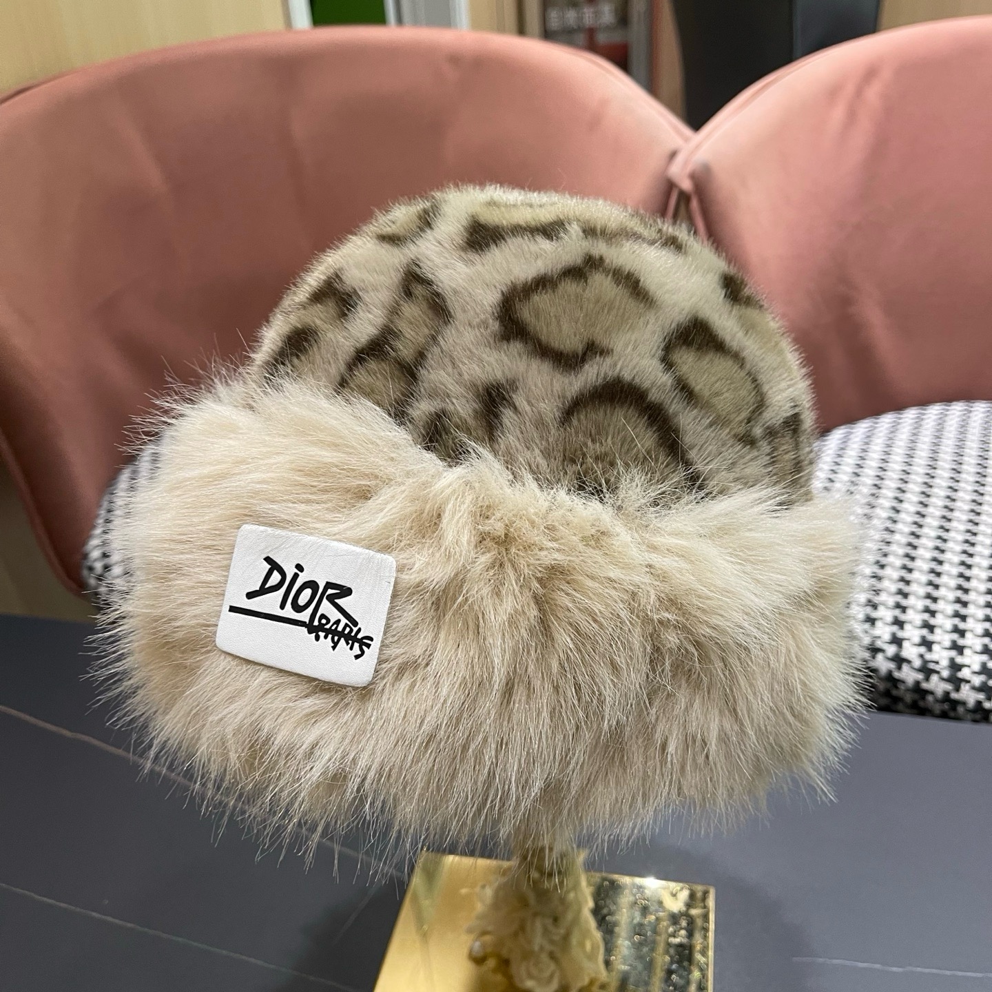 P110 迪奥Dior复古豹纹毛绒帽女冬季百搭显脸小护耳渔夫帽加厚防寒保暖蒙古帽子