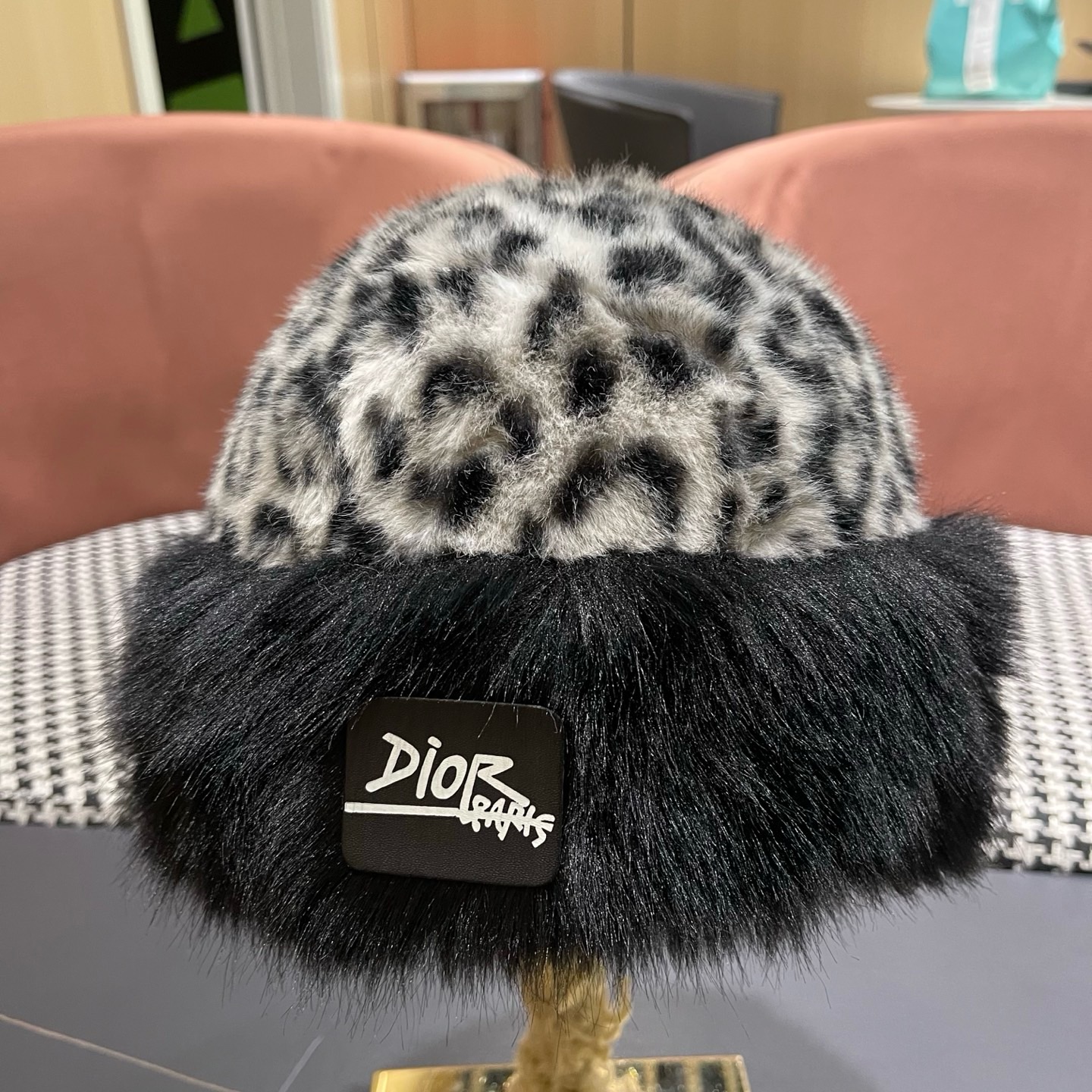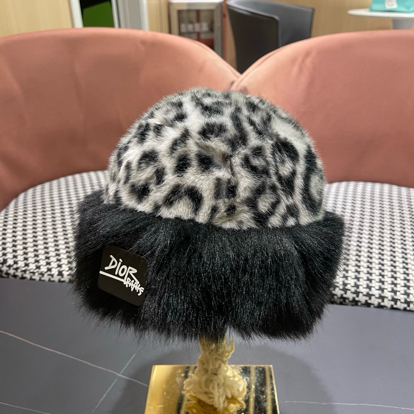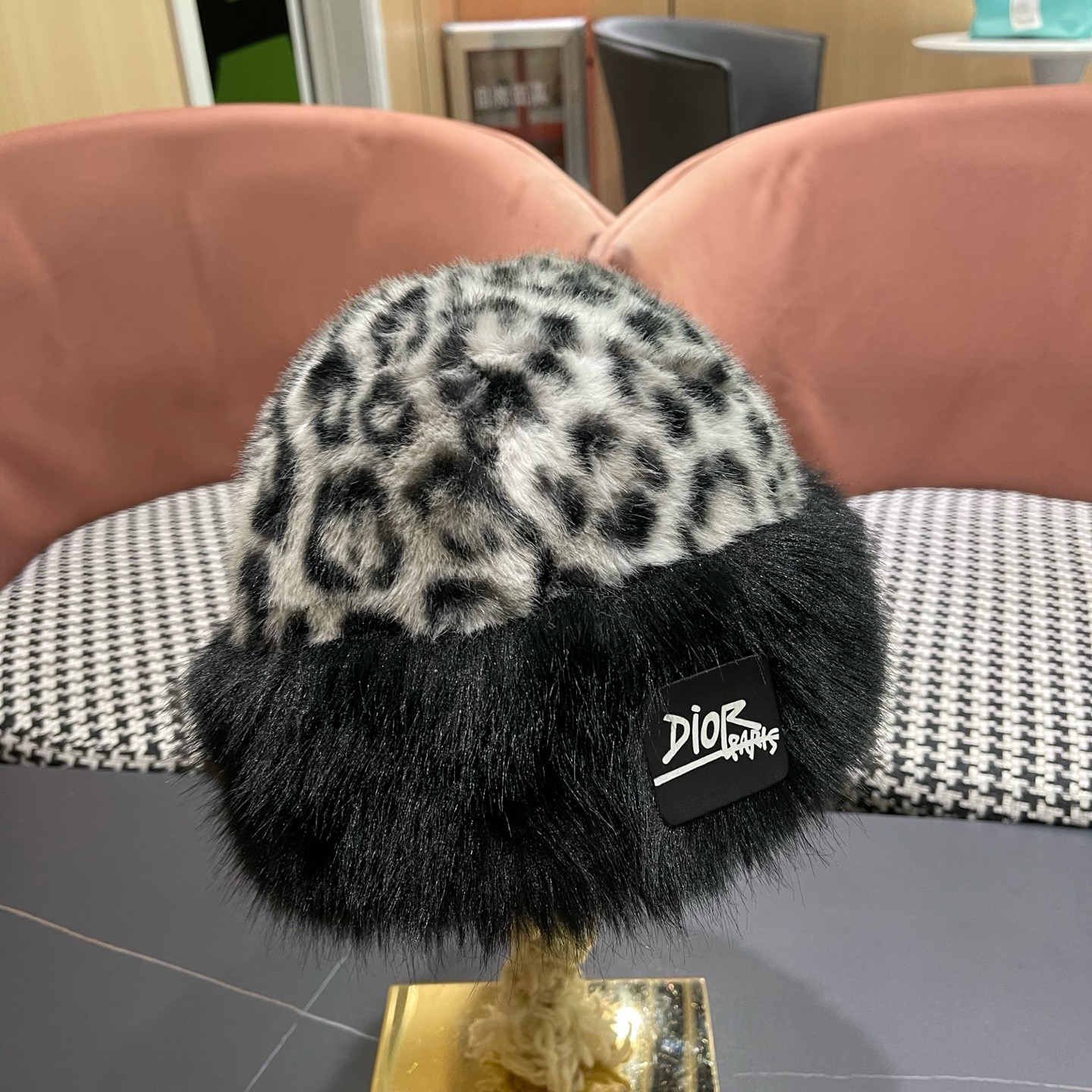 P110 迪奥Dior复古豹纹毛绒帽女冬季百搭显脸小护耳渔夫帽加厚防寒保暖蒙古帽子