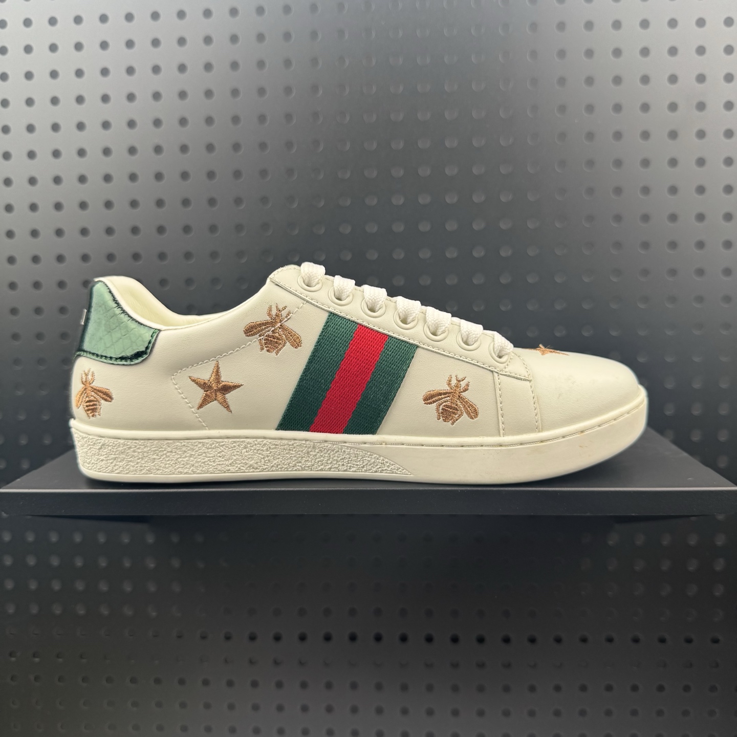 💰120 ✅GUCCI古驰 ACE 皮革 刺绣蜜蜂 时尚板鞋 男女款 白色 货号:429466 A38GO 9068 尺码:35-44(24)
