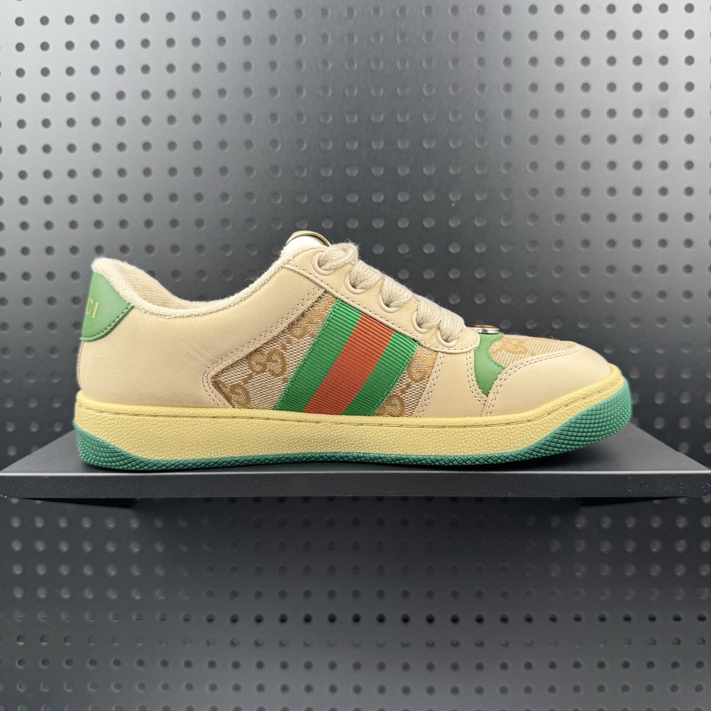 💰170 ✅Gucci Distressed Screener sneaker 古驰小脏鞋系列 官方同步 绿盒版本 海淘代购指定专供经典原型复古百搭做旧小脏板鞋复古学院风 怀旧版 原版做旧 货号: 570443 9Y920 9666 尺码:35-45(31)