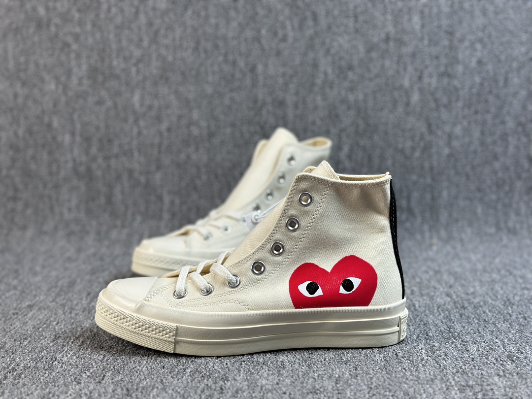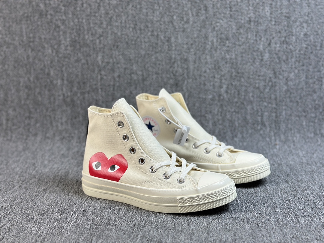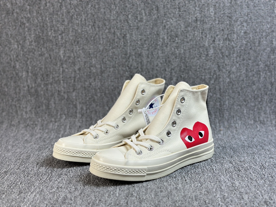 本地() #虎扑版 原装工艺盒高端硫化 蓝底 真标扫描正版印刷CDG Play x CONVERSE 1970s 白色高邦匡威川久保玲 play爱心联名帆布鞋 环保绿色中底布 原盒原标硫化鞋 货号:150205C Size:35 36 36.5 37 37.5 38 39 39.5 40 41 41.5 42 42.5 43 44