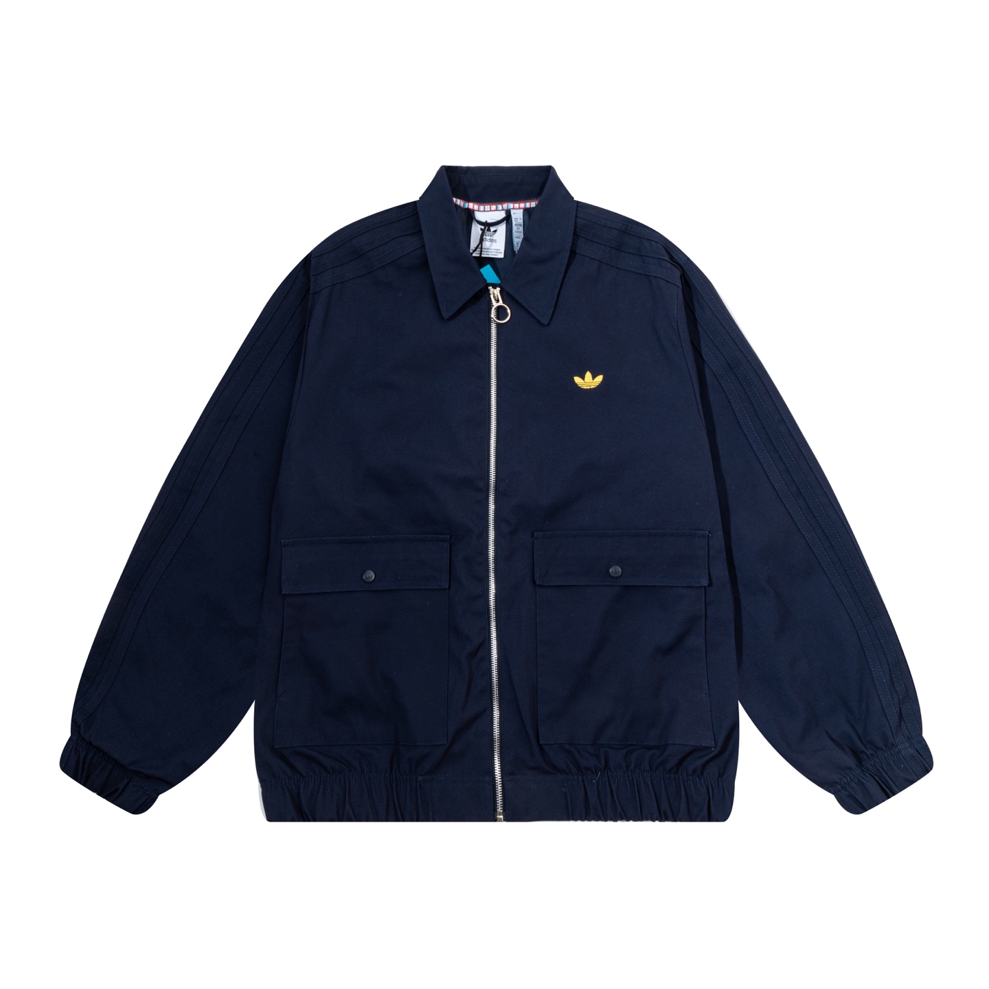 P150💰 【adidas 复古工装风夹克】 宝子们看过来!adidas 这款夹克太绝啦~藏青、酷黑双色可选,复古工装感直接拉满。翻领设计利落有型,胸前小金标精致又吸睛,两侧大口袋实用还能凹造型。面料舒适,版型宽松不挑人,春秋季穿正合适,不管是搭配牛仔裤走街头风,还是配休闲裤耍帅,都能轻松穿出随性潮酷范儿,让你成为人群中亮眼的存在~ 款号 黑色 蓝色 尺码S-XXL