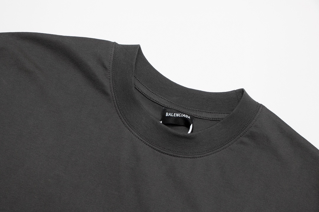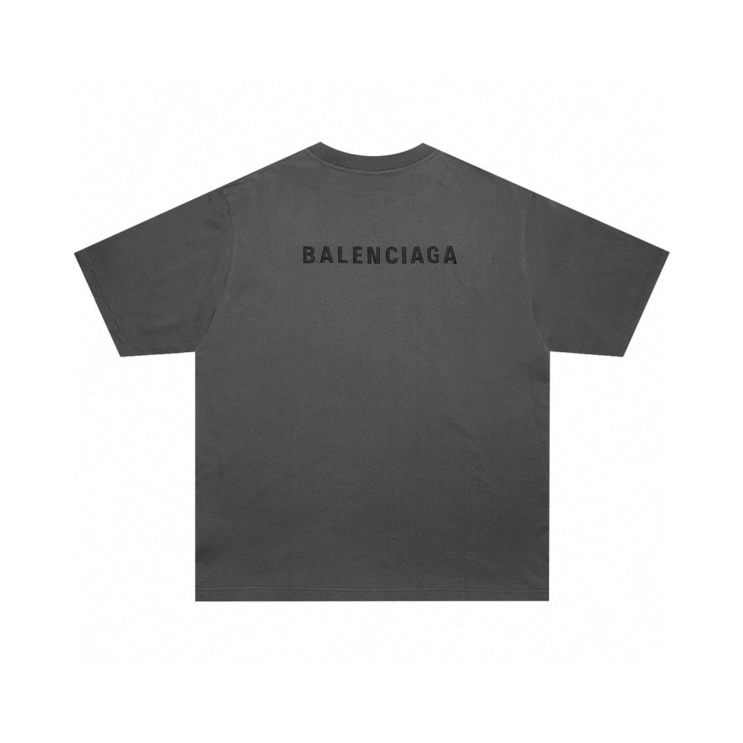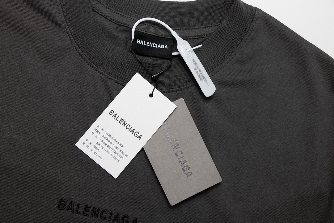 P79💰 细节图【顶级版本280.官网品质】BALENCI*GA/巴黎#经典款. 前后片经典字母刺绣.成衣喷马骝炒盐洗水做旧磨烂短袖T恤#2023春夏季砖柜同步。 面料采用巴黎ZP定织定染全棉双纱、克重260克,布面干净.布纹清晰,柔软舒适。螺纹釆用定染无色差。经典字母采用进口绣花机刺绣,字母清晰,效果立体。成衣喷马骝水洗做旧,手工磨烂。还原砖柜, 版型釆用OS宽松落肩版型.男女同款 编码:BL2415 颜色:雾灰兰 尺码:XS一L
