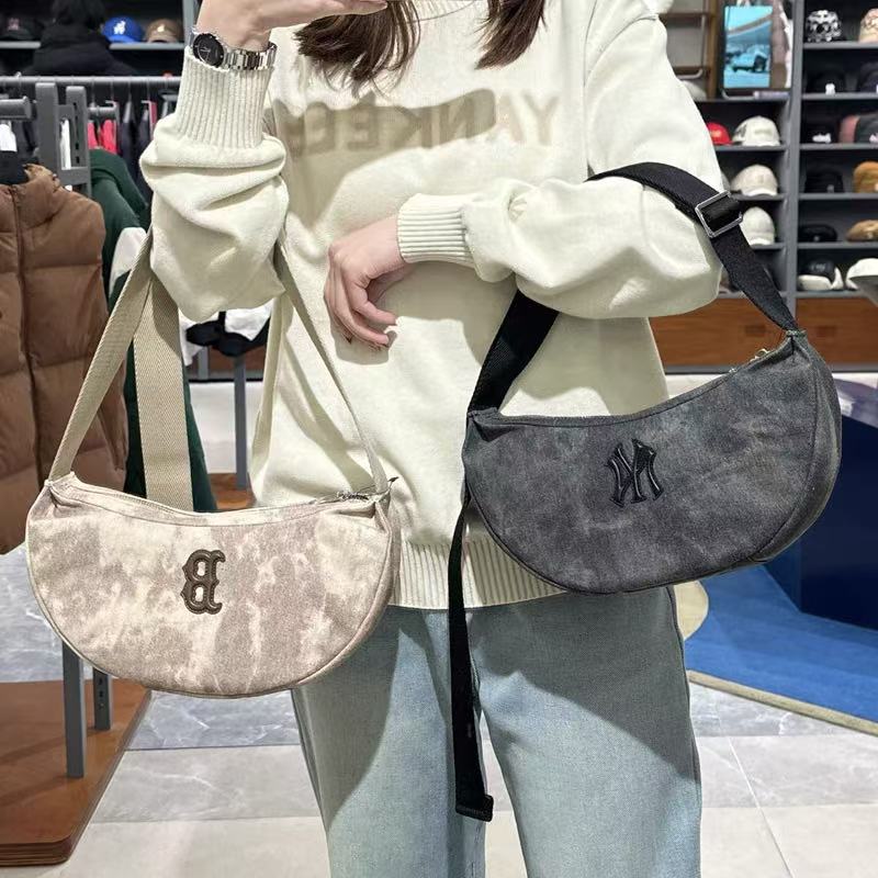 P95💰 款号:131 韩国MLB包包春季新款复古水洗做旧牛仔水洗斜挎单肩包腋下包 尺寸:27x8x13.5cm 颜色:沙棕色 炭灰色