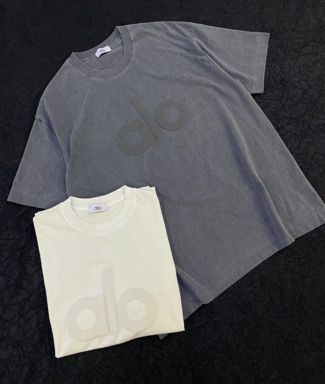 P79💰 ALO洗水复古发泡印花LOGO宽松慵懒风T恤 款号 :AL312 码数:S M L 颜色:洗水灰 洗水杏