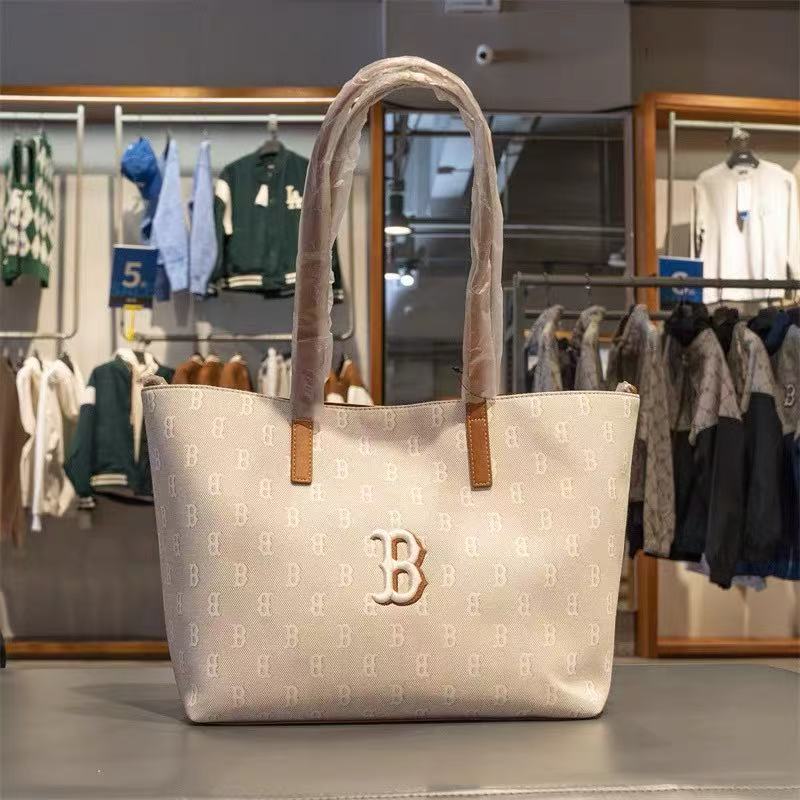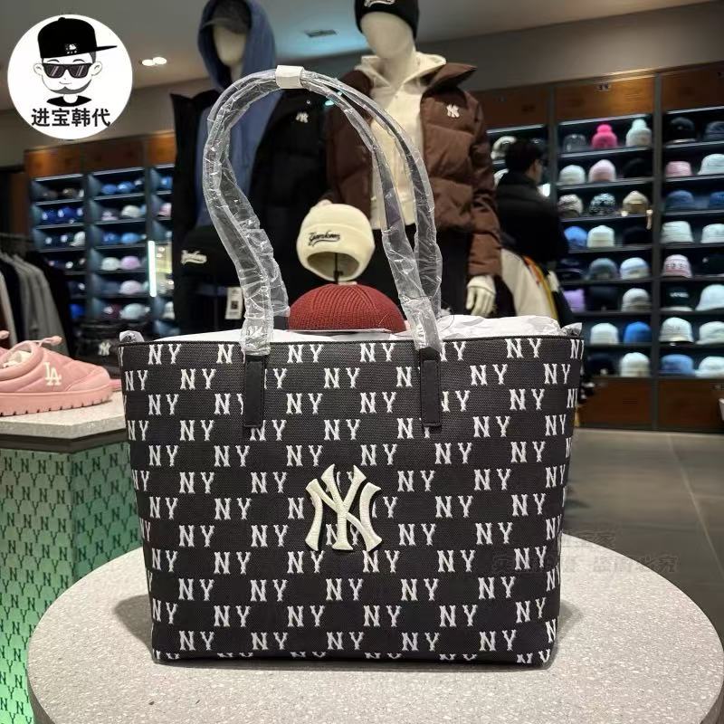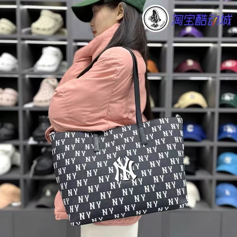 P98💰 款号:127 韩国MLB春季新款老花满标复古手拎包手提单肩包腋下包大容量托特包 尺寸:32x13.5x27cm 颜色:黑色 浅米