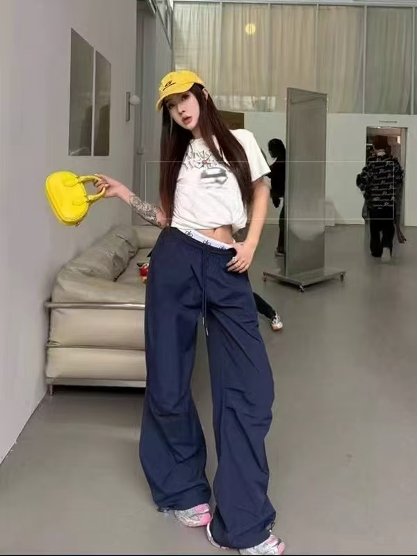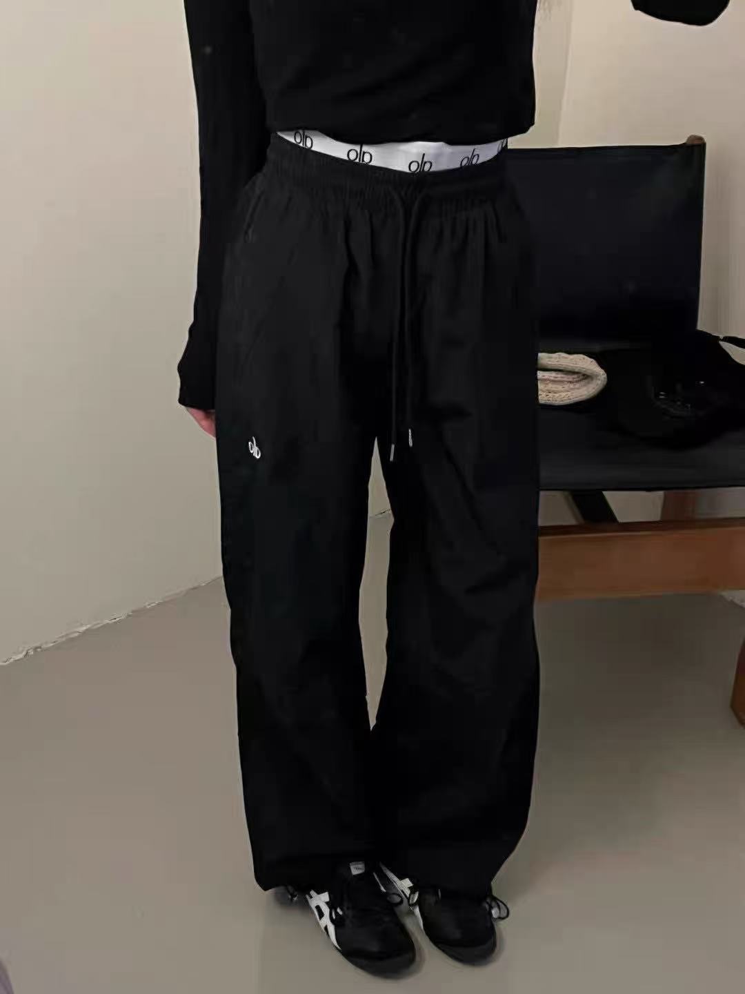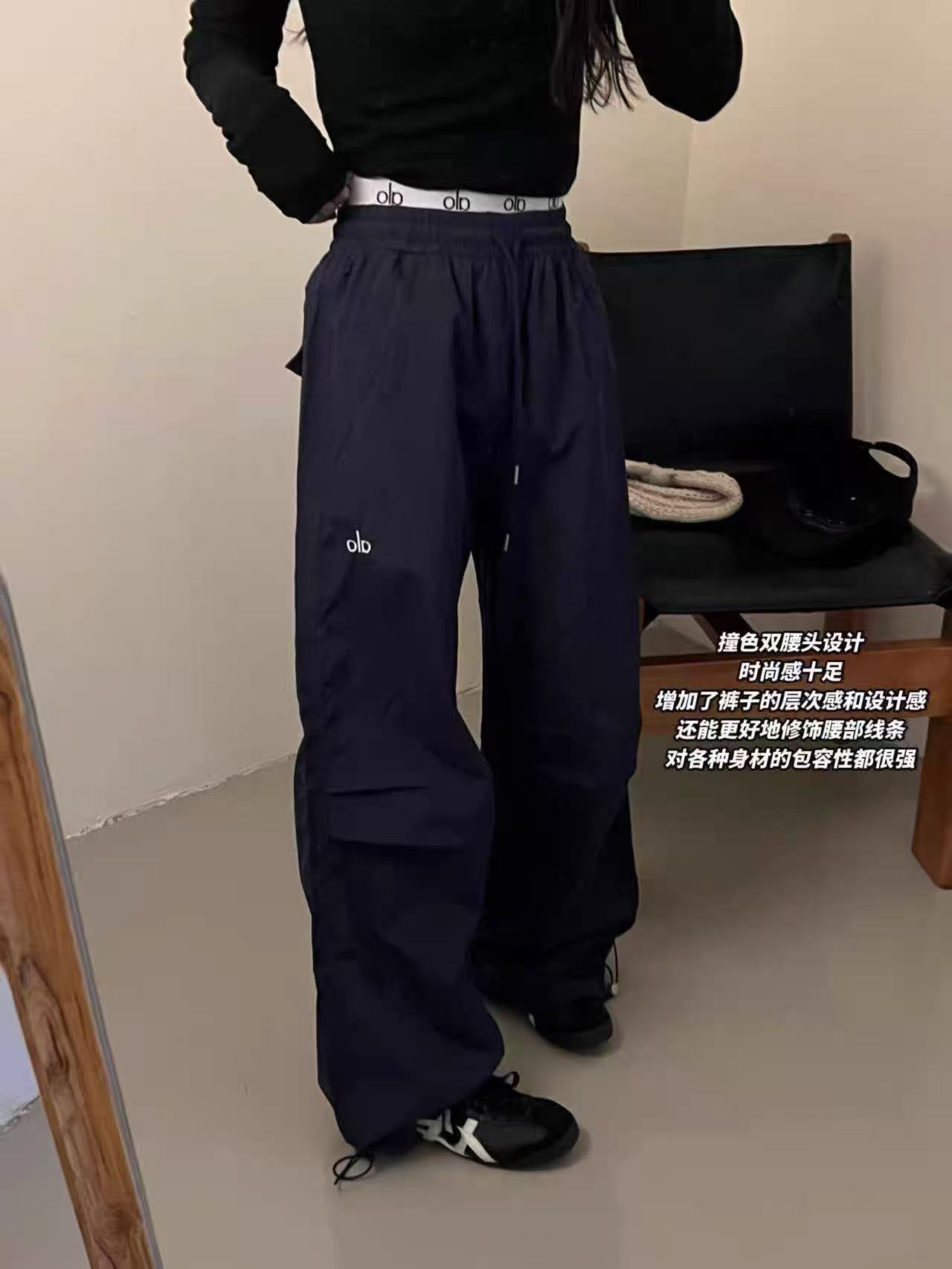 P98💰 alo2025美式复古字母提花双腰头休闲长裤宽松显瘦百搭运动裤 款号:AL806 码数:S M L 颜色:白色 藏青色 黑色