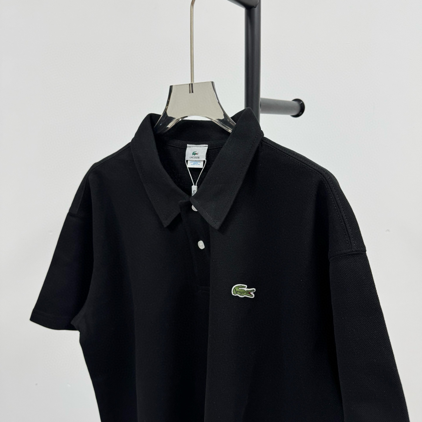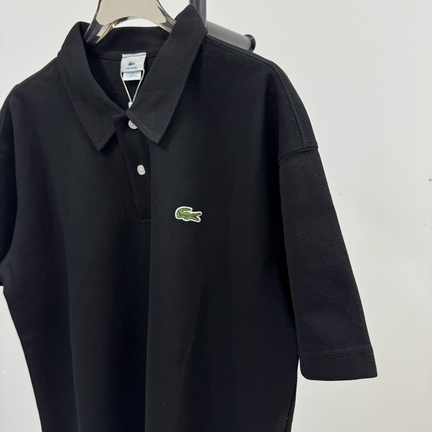 LACOSTE 鳄鱼🐊 经典贴布绣花标重工艺小标刺绣  王一博同款 落肩款纯色POLO衬衫领短袖