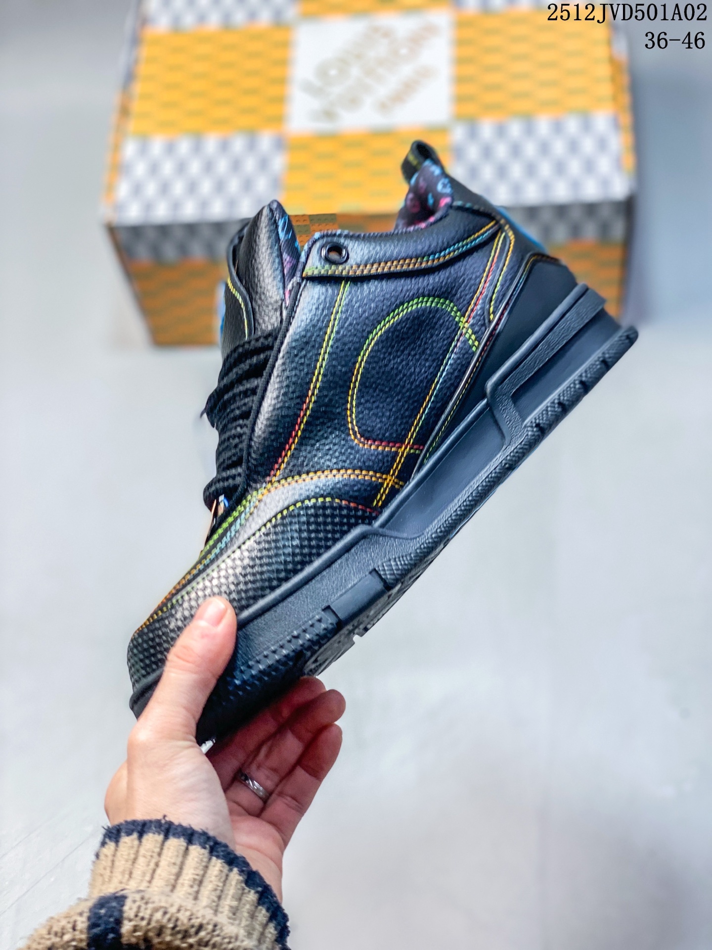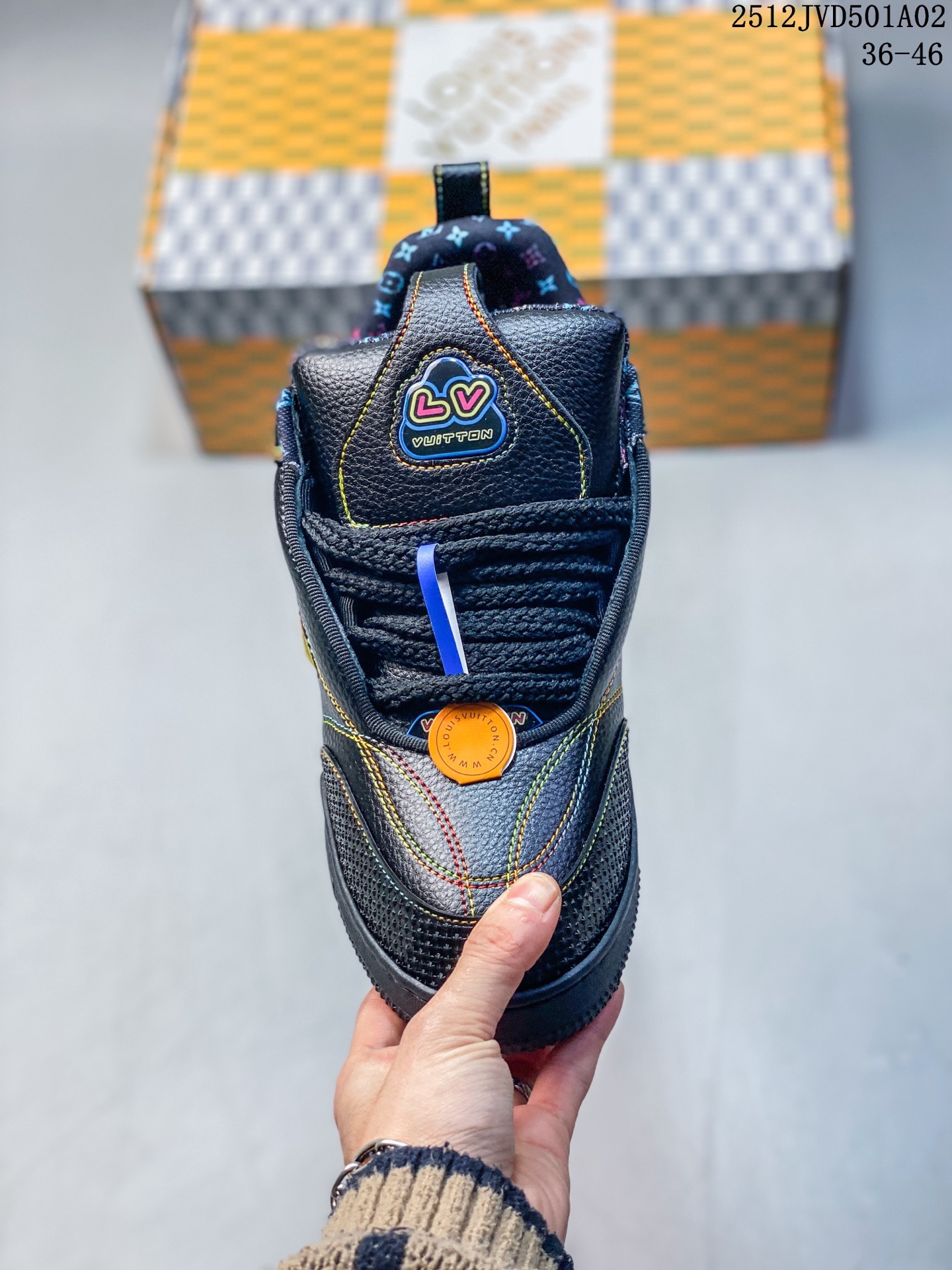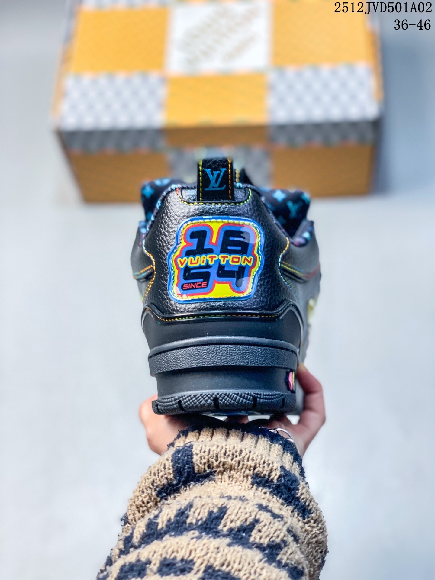 💰190 路易威登 Louis Vuitton LV路易威登板鞋 时尚运动鞋潮厚底增高男女鞋。舒适防滑底和百搭性霸屏整个时尚娱乐圈,细节调整完美主义!采用柔软帆布皮革拼接鞋面,独家开模大底, 侧边采用3D打印标志性Logo 尽显贵族时尚气息,配带正品全套包装。全新LV路易威登Louis vuitton Trainer Sneaker Low 休闲运动文化百搭板鞋 12JVD501A02