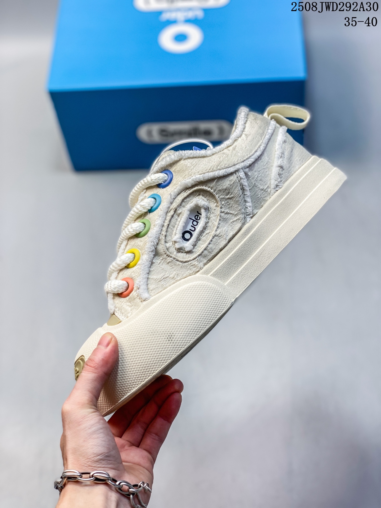 💰180 Ouder 人气单品 超级萌丑鞋 | 专柜新款大头开口笑帆布鞋系列此品牌以丑萌膨胀设计风格备受关注,品牌旨在为当代男女打造年轻 潮流 时髦 不一样的美。新开口笑鞋面采用膨胀及宽体的设计语言,将鞋头与鞋身打造成极为夸张的宽体结构。兼具搭配与潮流属性随意穿搭 尺码:看图所示 编码:08JWD292A30